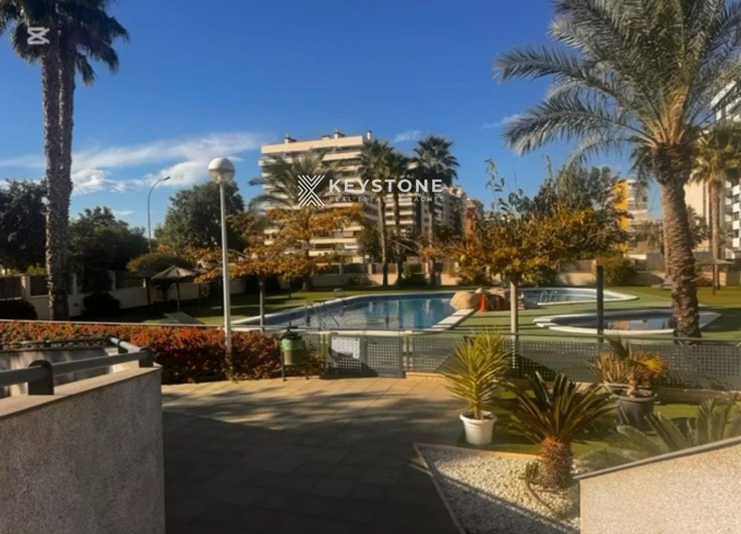 Die Immobilie befindet sich in sehr gutem Zustand, ist vollständig möbliert und verfügt über eine ausgestattete Küche sowie Klimaanlage. Die Anlage bietet einen Gemeinschaftspool – ideal zum Entspannen im mediterranen Klima.