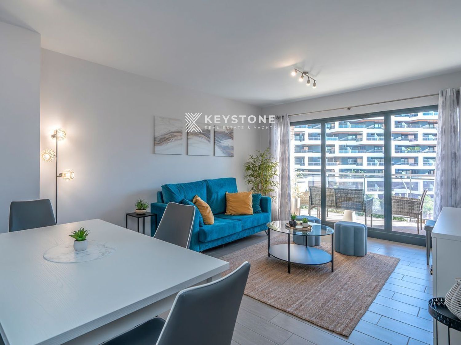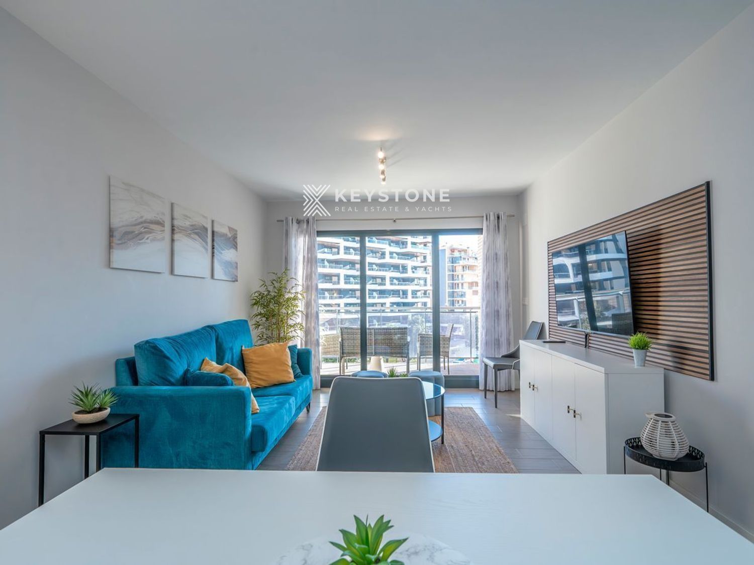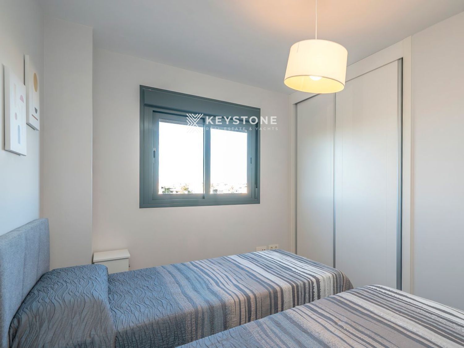 Set on the third floor of a contemporary gated community, the property features a bright open-plan living area with direct access to a private terrace. The modern integrated kitchen enhances the space, while two bedrooms and two bathrooms ensure comfort and privacy.