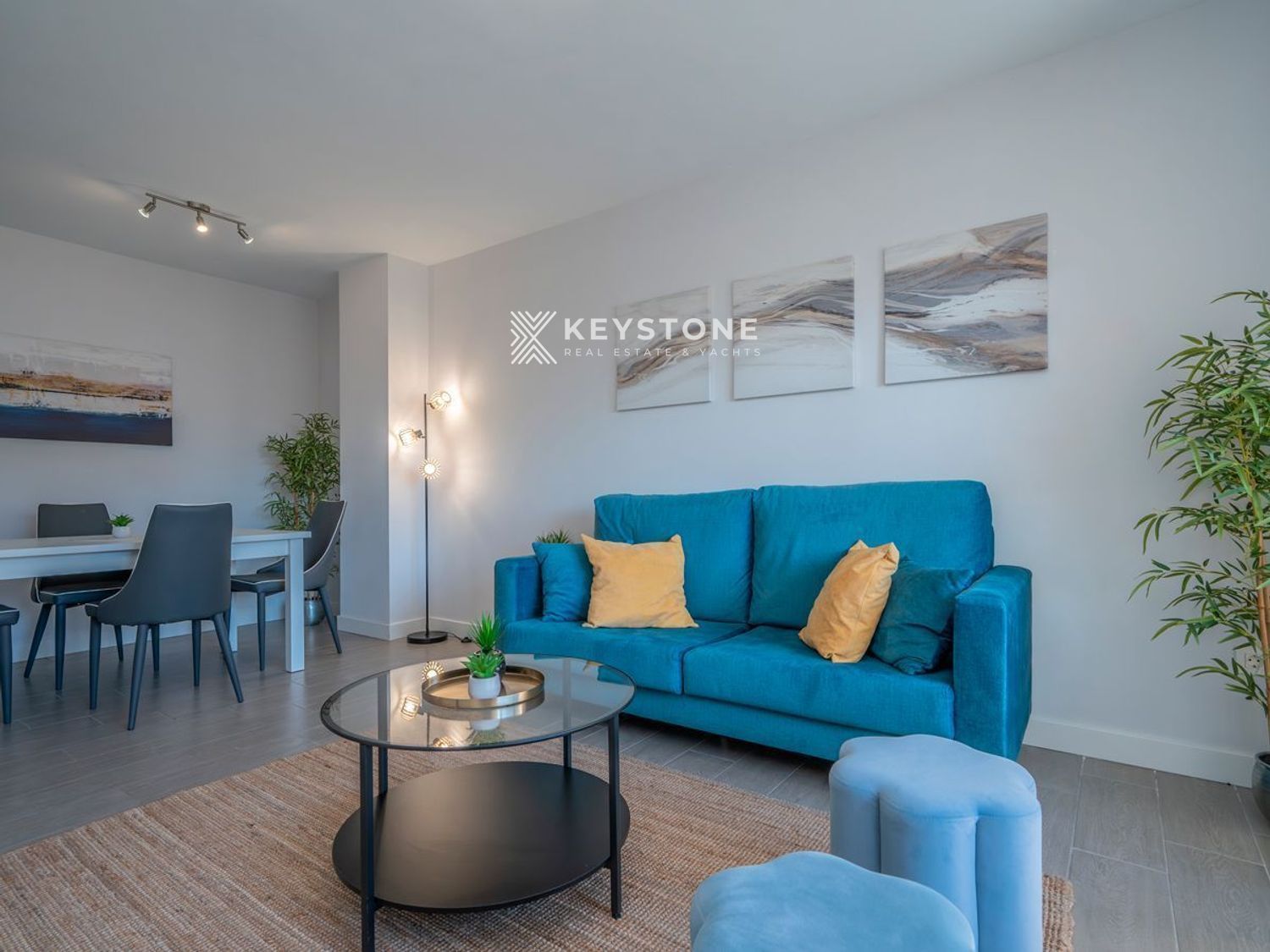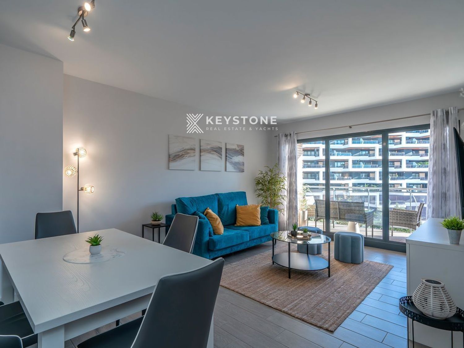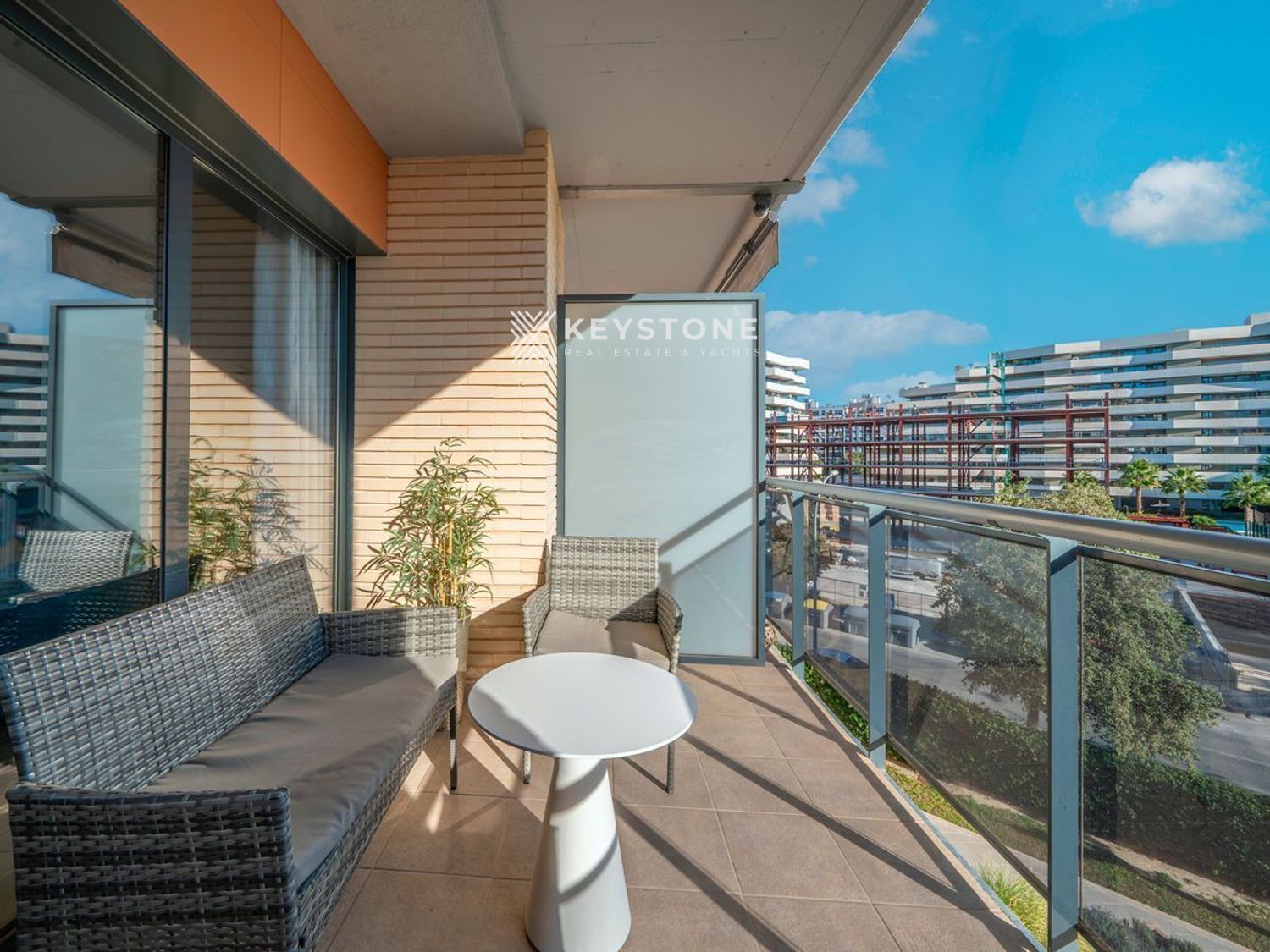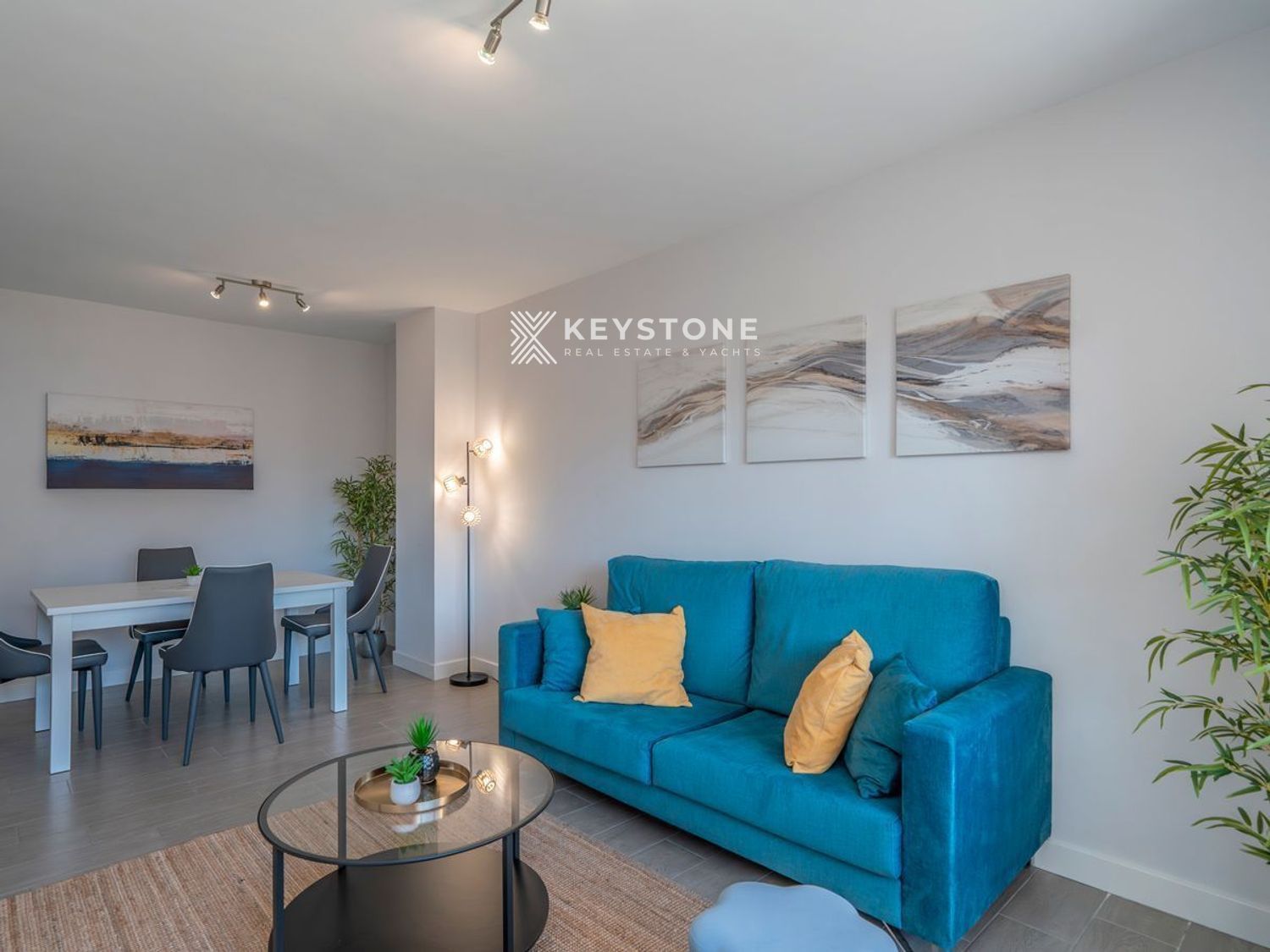 Set on the third floor of a contemporary gated community, the property features a bright open-plan living area with direct access to a private terrace. The modern integrated kitchen enhances the space, while two bedrooms and two bathrooms ensure comfort and privacy.