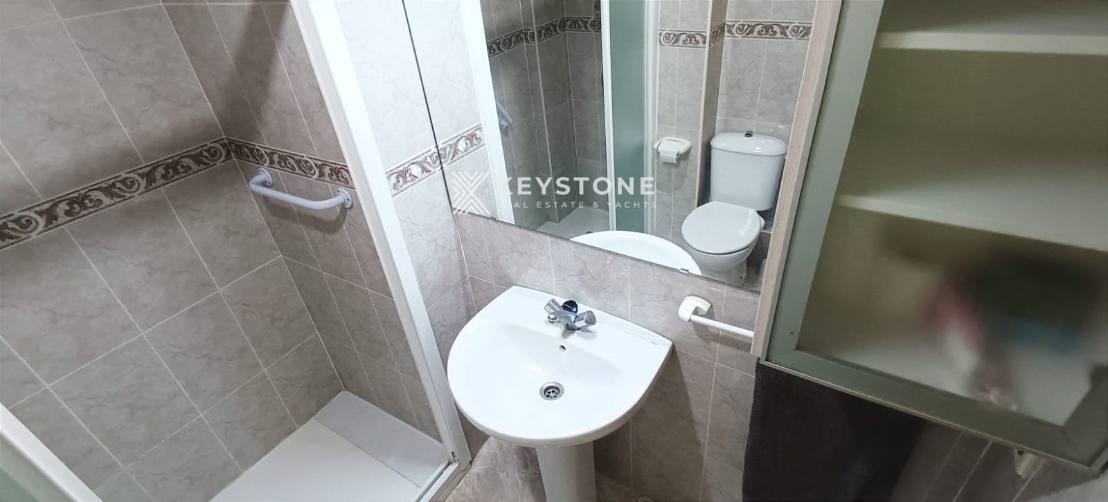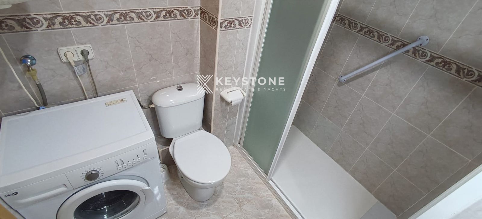 The property features a spacious open-plan kitchen and living area, fully equipped for everyday living. It also includes a full bathroom with a washing machine, providing extra convenience for long-term stays.
