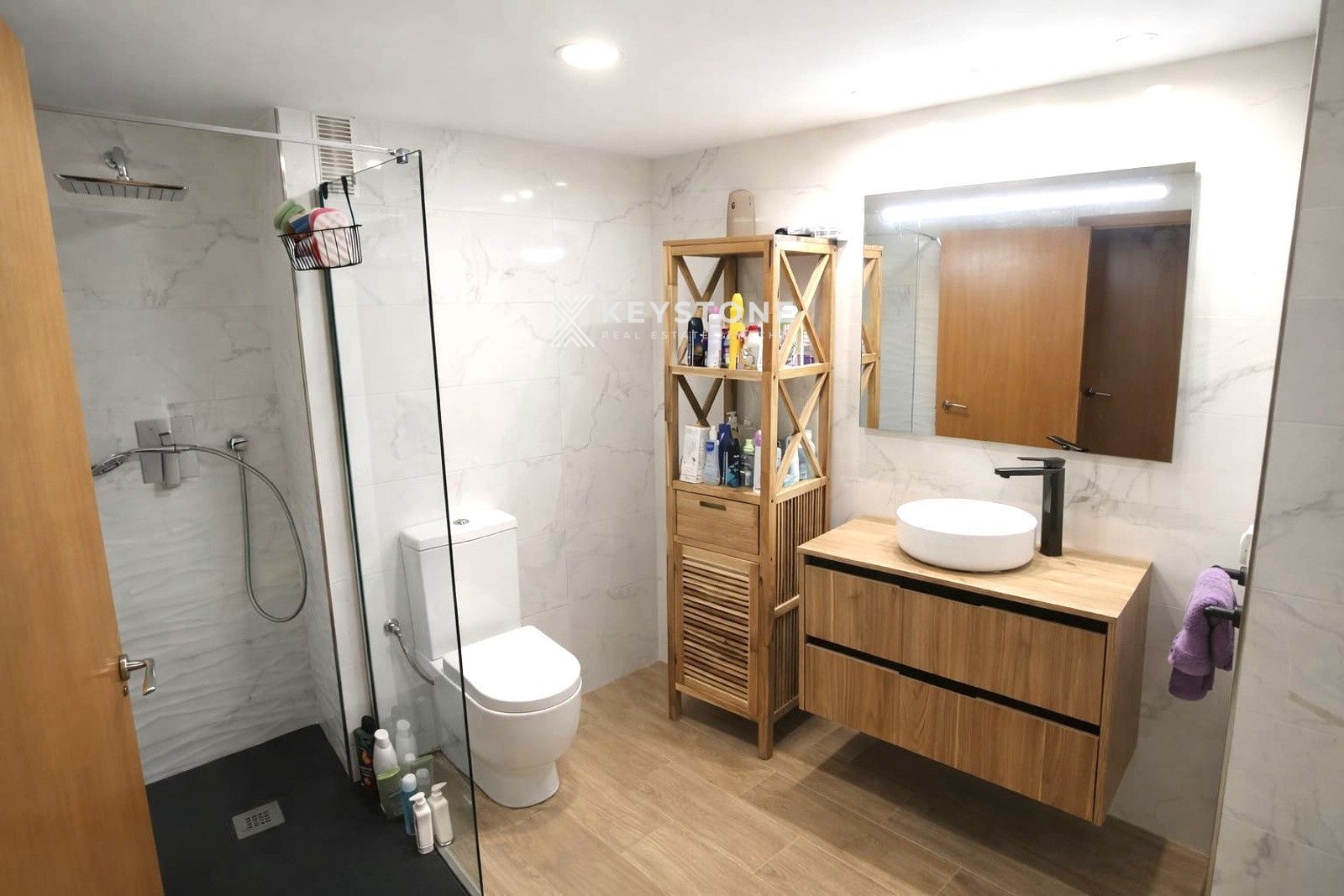 This fully exterior penthouse benefits from excellent natural light throughout the day. It features three bedrooms with built-in wardrobes, including a master bedroom with en-suite bathroom, plus an additional full bathroom.