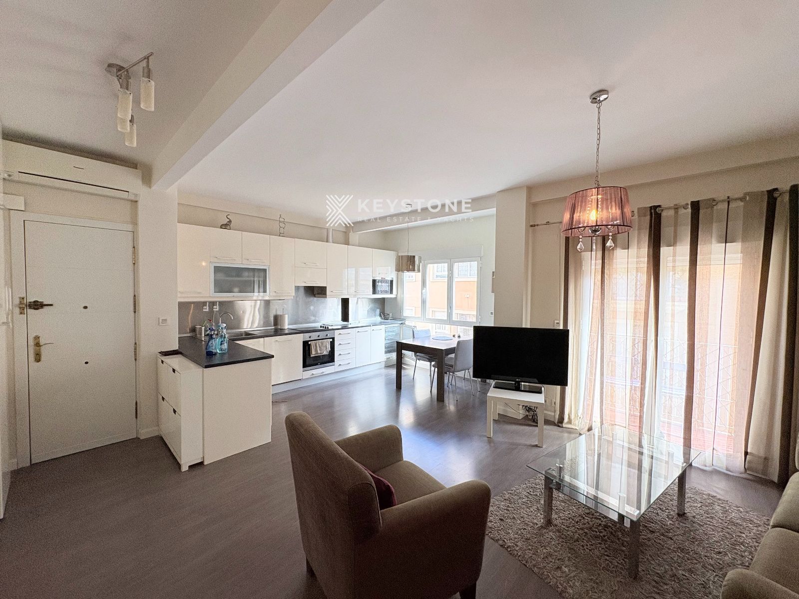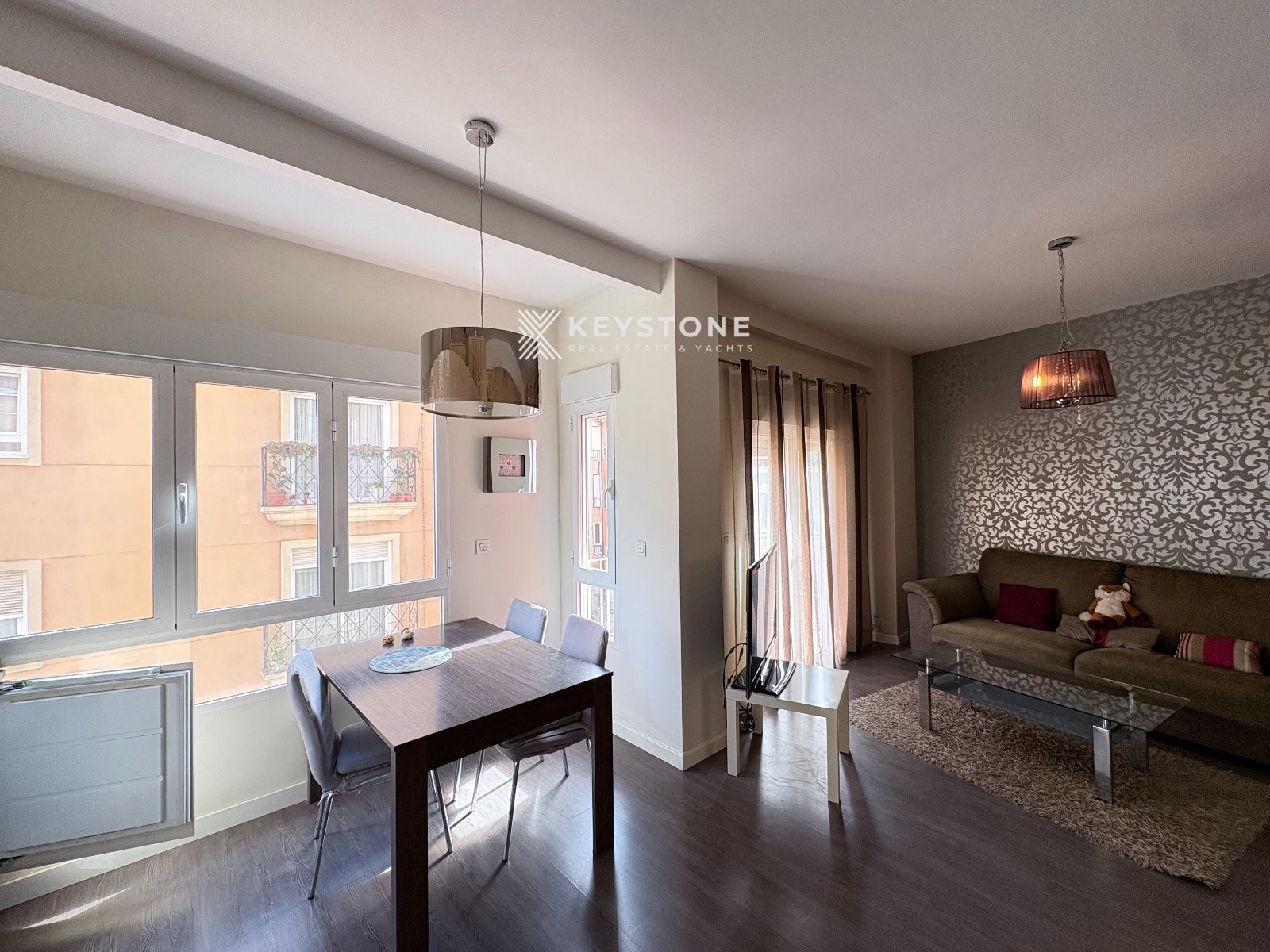 This stylish 85 sqm apartment on Calle del Teatro features three bedrooms, one bathroom, and a bright open-plan living-dining area with kitchen. The property includes a private terrace, dressing area, and separate laundry space. Equipped with two air conditioning units (hot/cold), ensuring year-round comfort. Located in the heart of Alicante, close to all amenities, shops, and transport links.