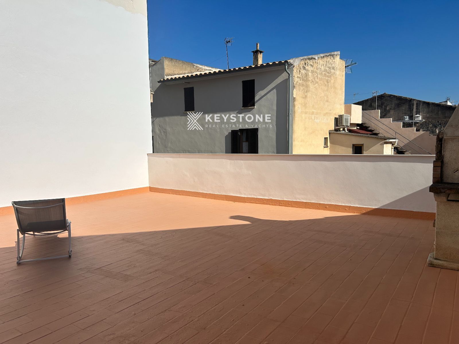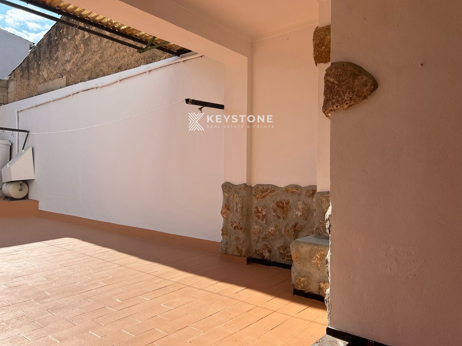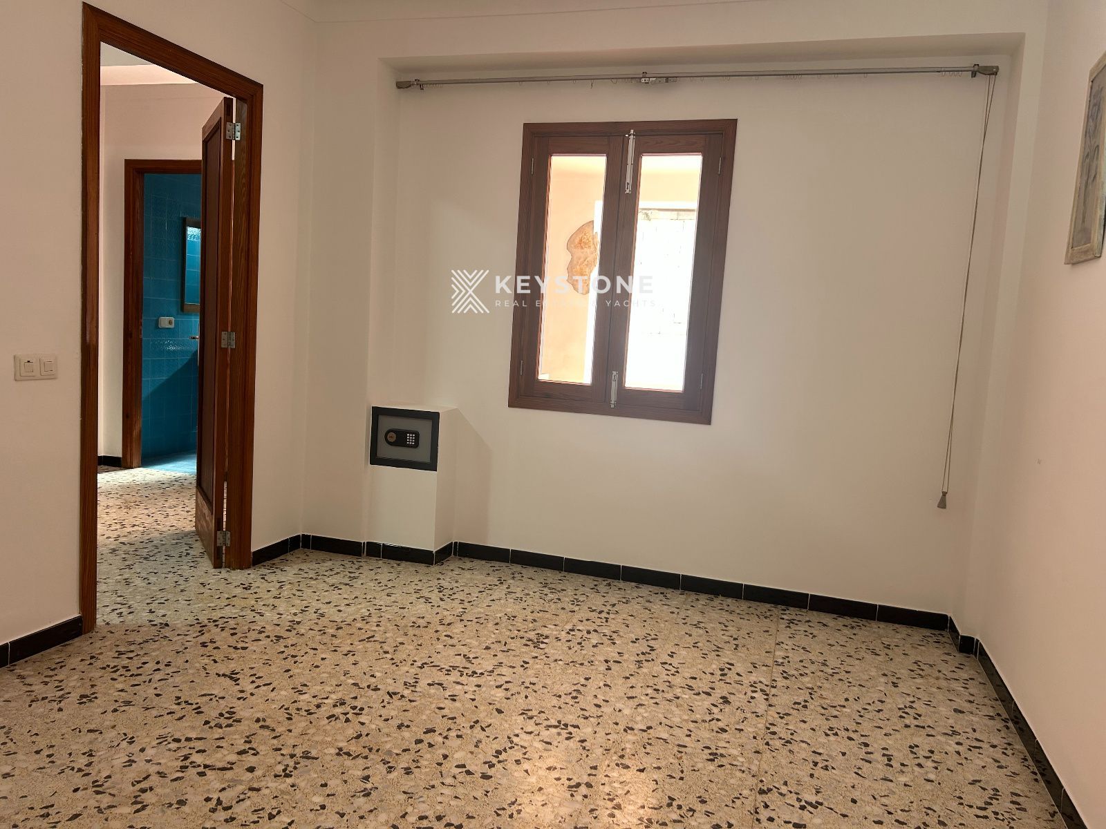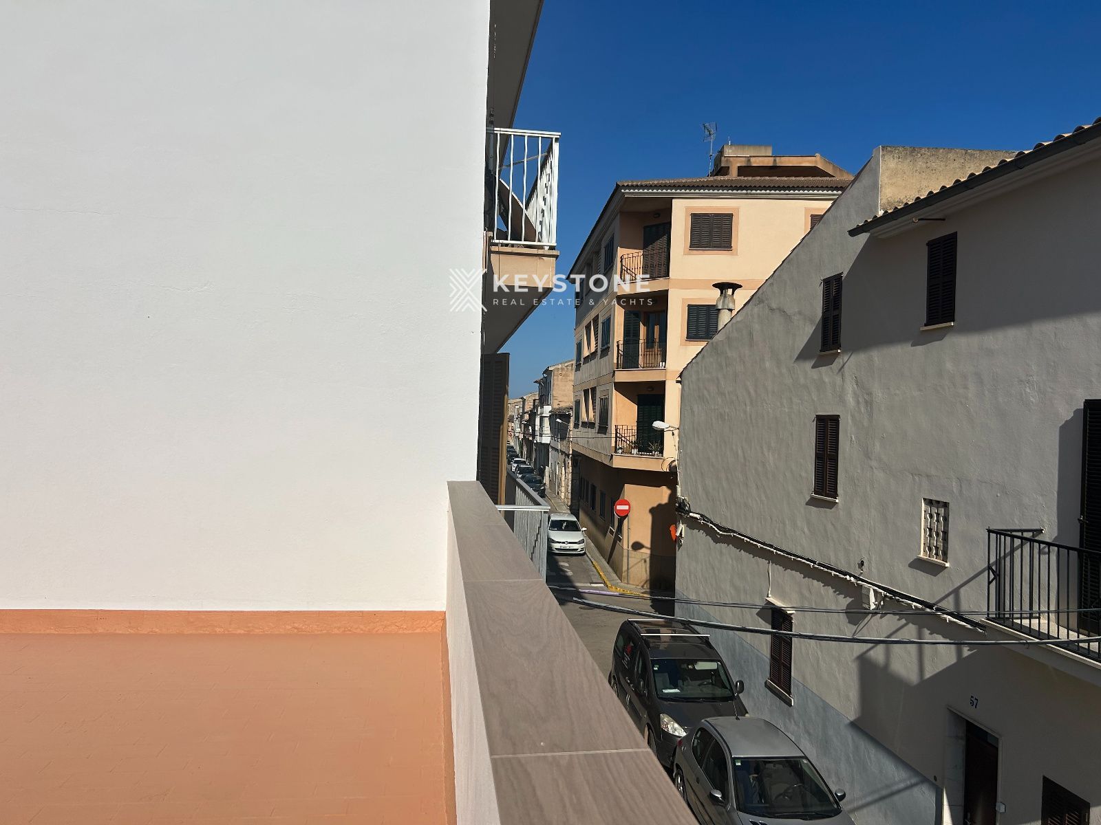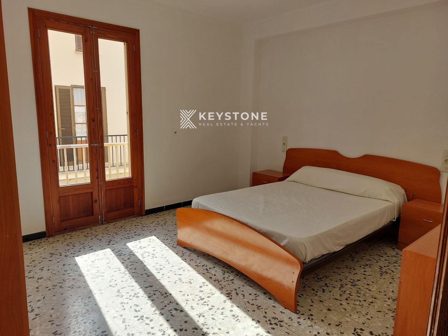 Discover the perfect balance of traditional Mallorcan character and modern comfort in this expansive 90 m² first-floor apartment. Designed with a professional couple in mind, this home features two generous, airy bedrooms with classic terrazzo floors—one of which comes fully furnished—and a recently renovated bathroom. The heart of the home is a brand-new, contemporary kitchen, ready for your personal touch (equipped with cabinetry and appliances, excluding the refrigerator and washing machine). Step out onto your private terrace to enjoy a quiet, relaxing atmosphere that provides the perfect sanctuary after a long day.