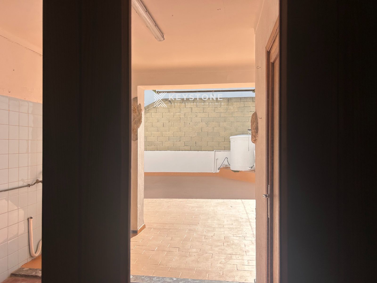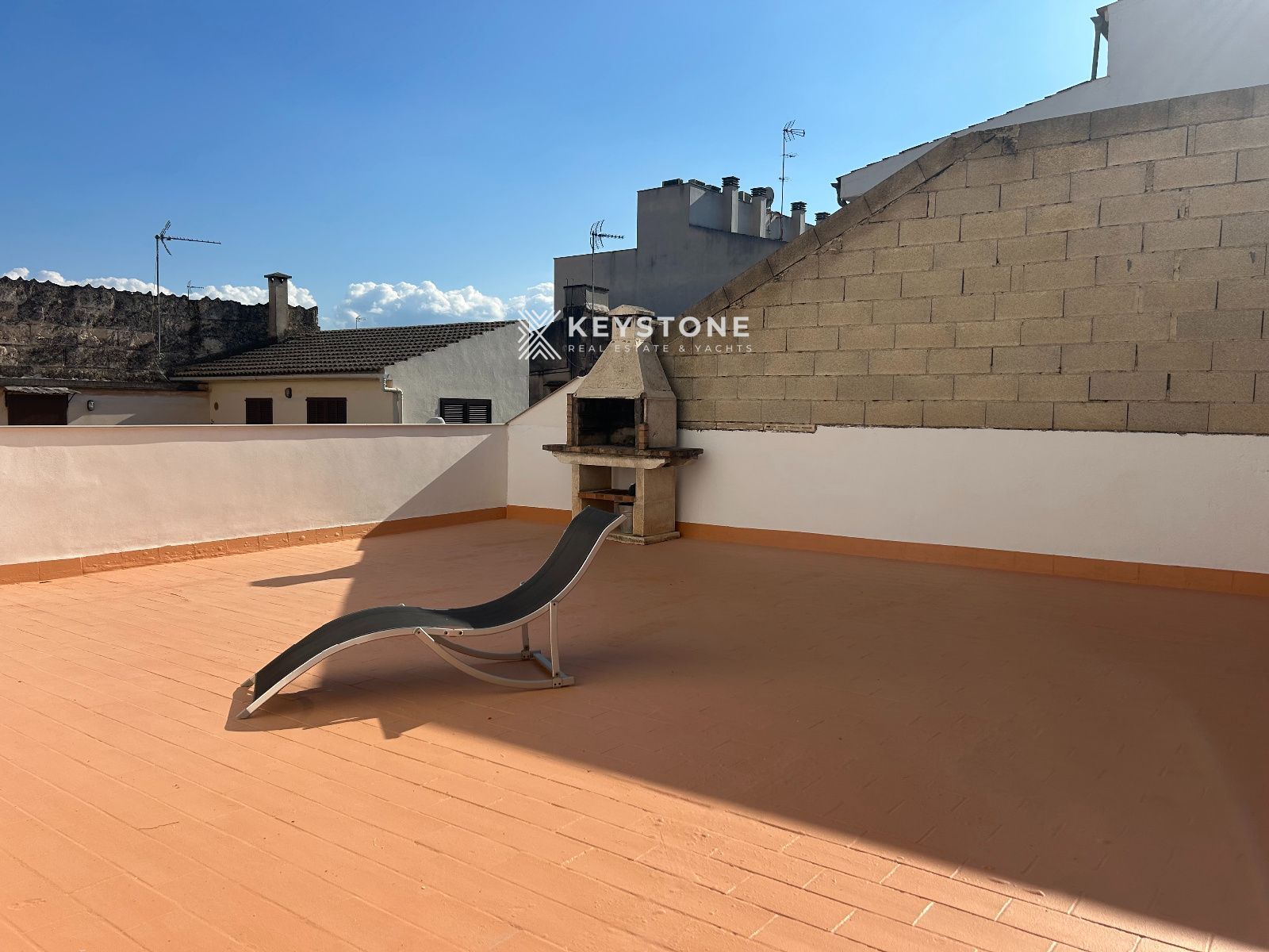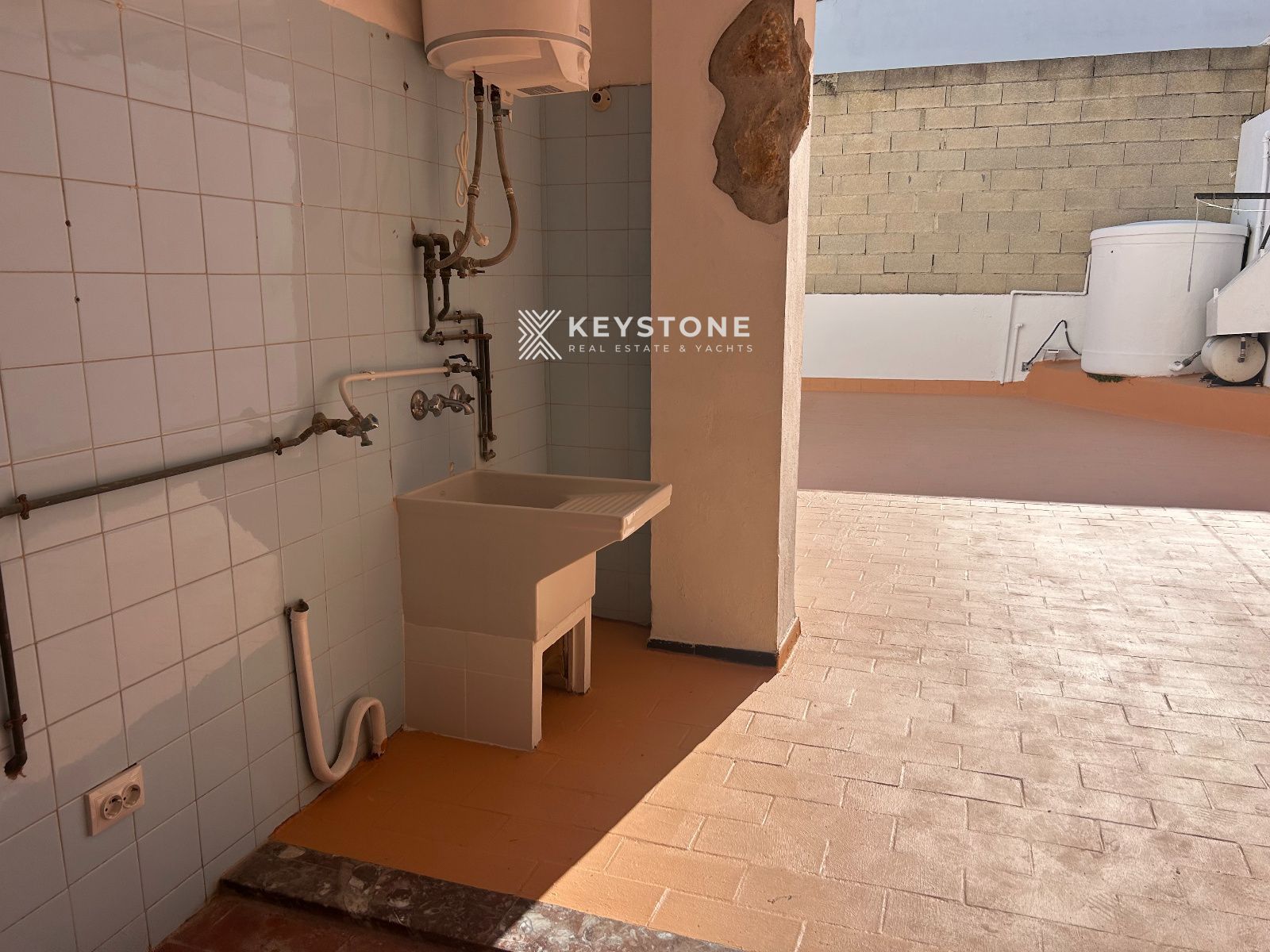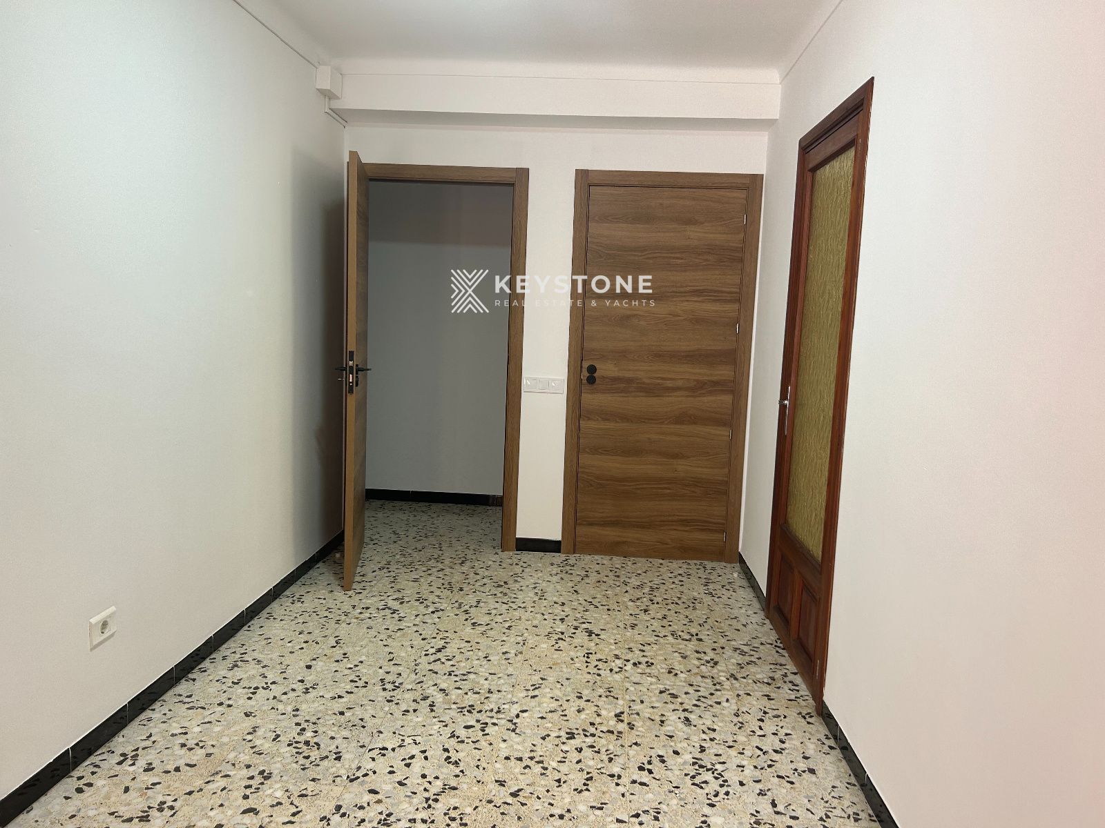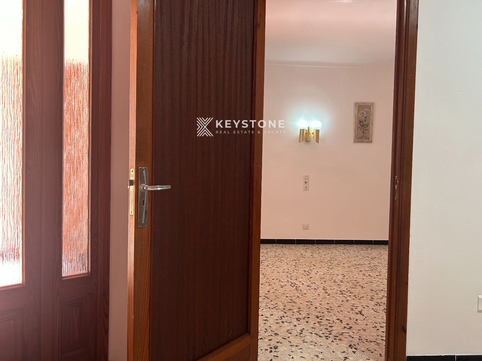 Discover the perfect balance of traditional Mallorcan character and modern comfort in this expansive 90 m² first-floor apartment. Designed with a professional couple in mind, this home features two generous, airy bedrooms with classic terrazzo floors—one of which comes fully furnished—and a recently renovated bathroom. The heart of the home is a brand-new, contemporary kitchen, ready for your personal touch (equipped with cabinetry and appliances, excluding the refrigerator and washing machine). Step out onto your private terrace to enjoy a quiet, relaxing atmosphere that provides the perfect sanctuary after a long day.