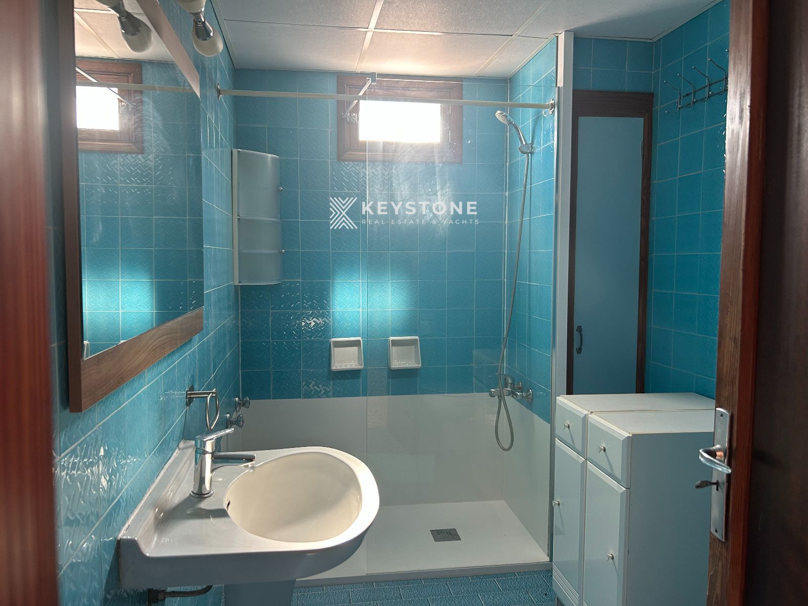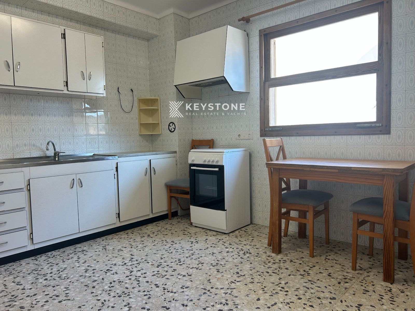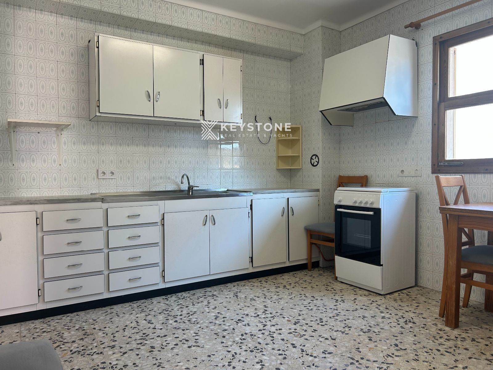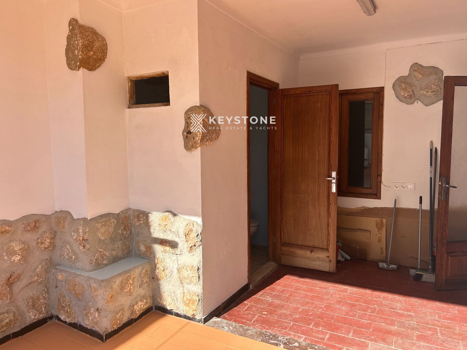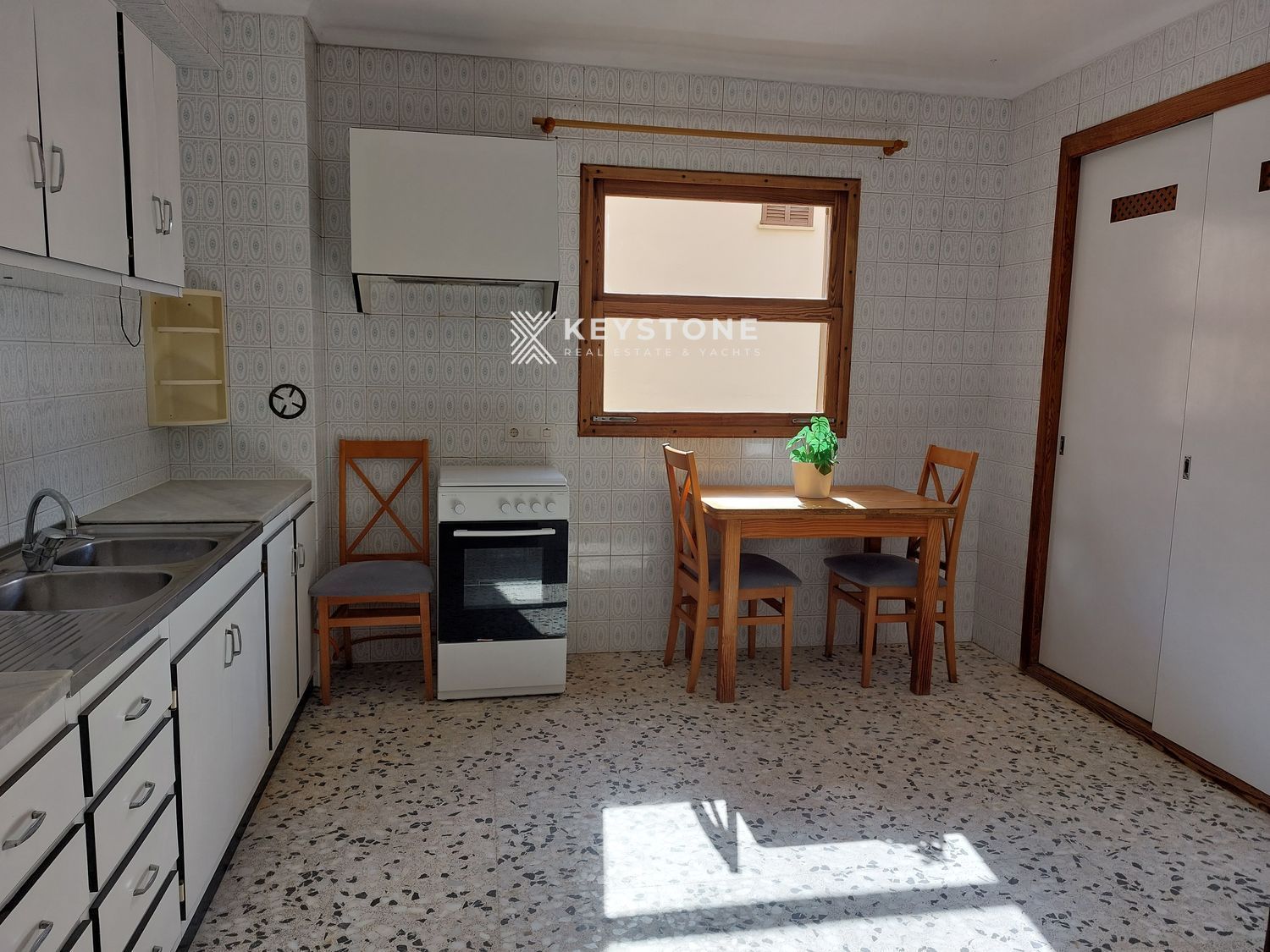 Discover the perfect balance of traditional Mallorcan character and modern comfort in this expansive 90 m² first-floor apartment. Designed with a professional couple in mind, this home features two generous, airy bedrooms with classic terrazzo floors—one of which comes fully furnished—and a recently renovated bathroom. The heart of the home is a brand-new, contemporary kitchen, ready for your personal touch (equipped with cabinetry and appliances, excluding the refrigerator and washing machine). Step out onto your private terrace to enjoy a quiet, relaxing atmosphere that provides the perfect sanctuary after a long day.