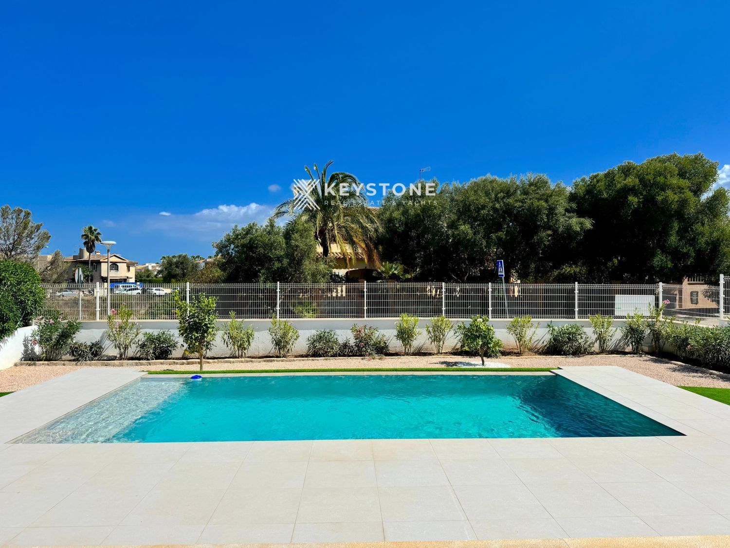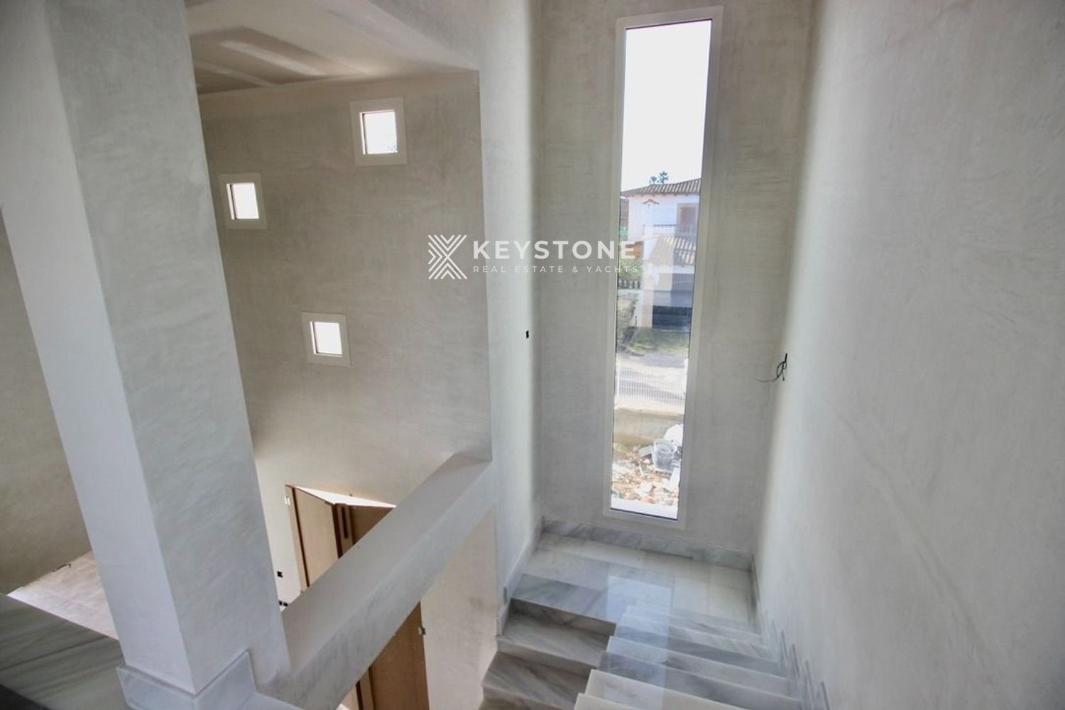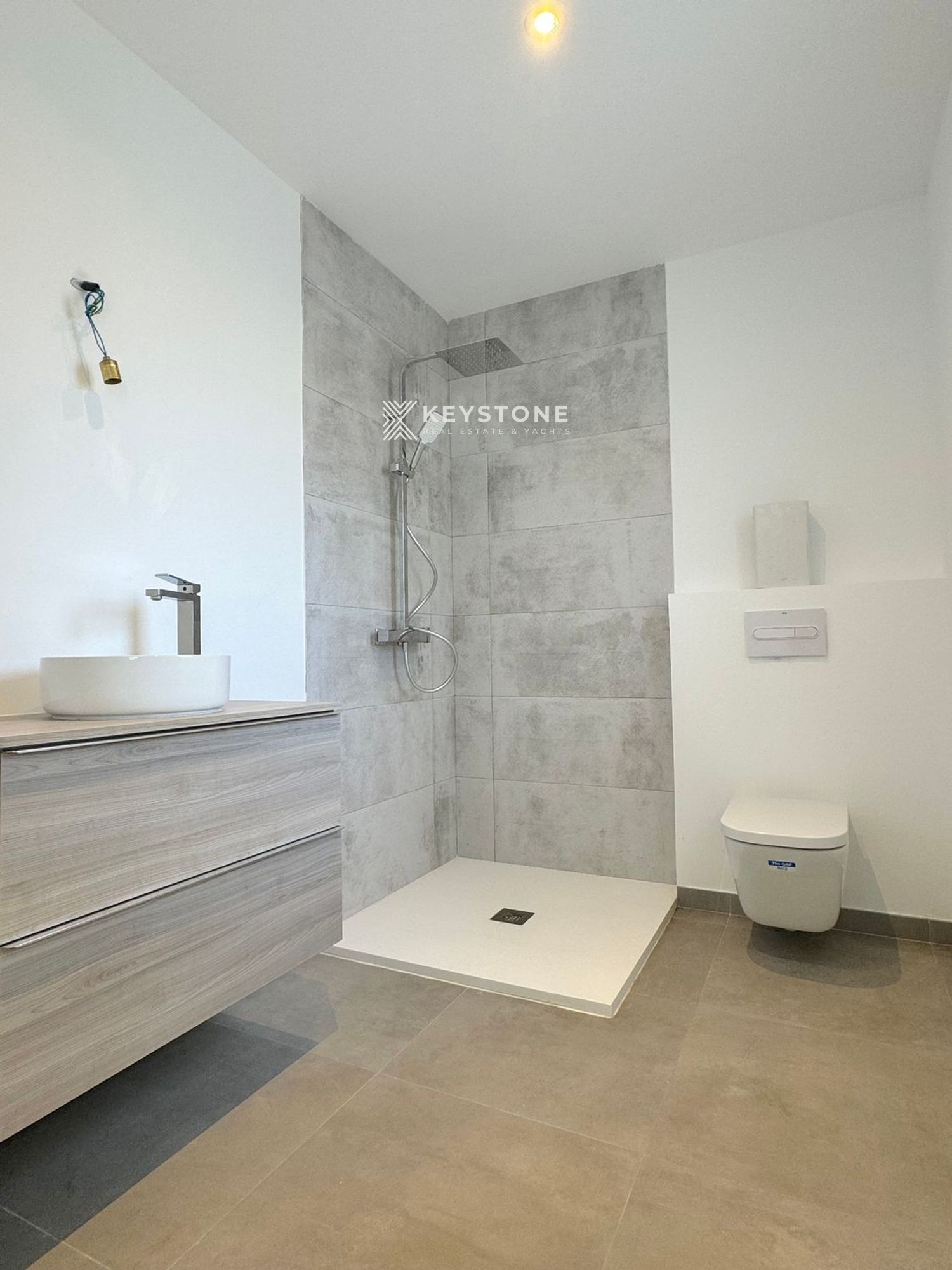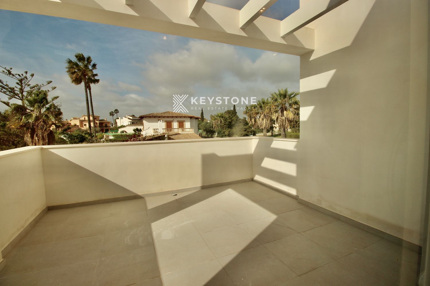 The modern open kitchen with cooking island, the spacious dining area and the bright living room with floor-to-ceiling windows create a stylish and inviting atmosphere. Spread over two floors, the villa offers 4 spacious bedrooms and 4 elegant bathrooms with walk-in showers and high-quality finishes.