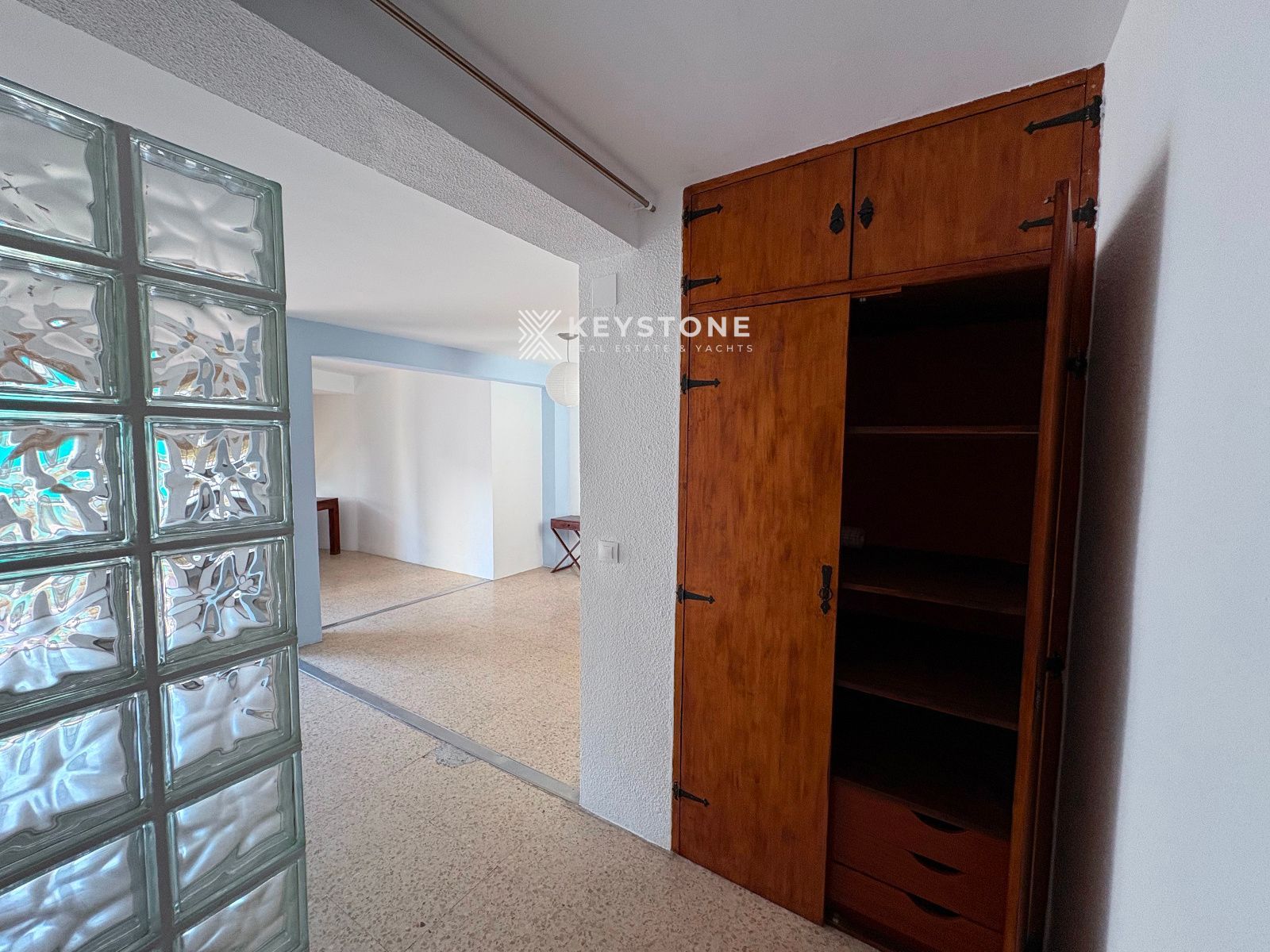 La propiedad está organizada en zona de día y de noche, con ventilación cruzada y luz natural durante todo el día gracias a su orientación a dos calles. Cuenta con dos dormitorios (uno de ellos muy amplio, fruto de la unión de dos habitaciones), dos baños completos con luz natural, cocina independiente, comedor, salón, una terraza soleada de 13 m² y un balcón adicional. Comparte únicamente dos paredes con vecinos, lo que garantiza un ambiente tranquilo e íntimo.