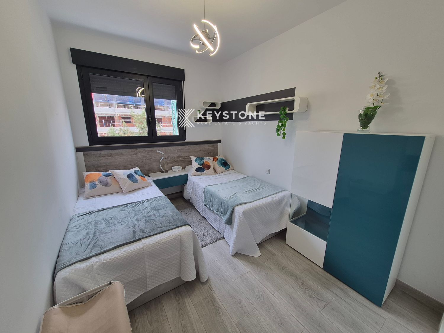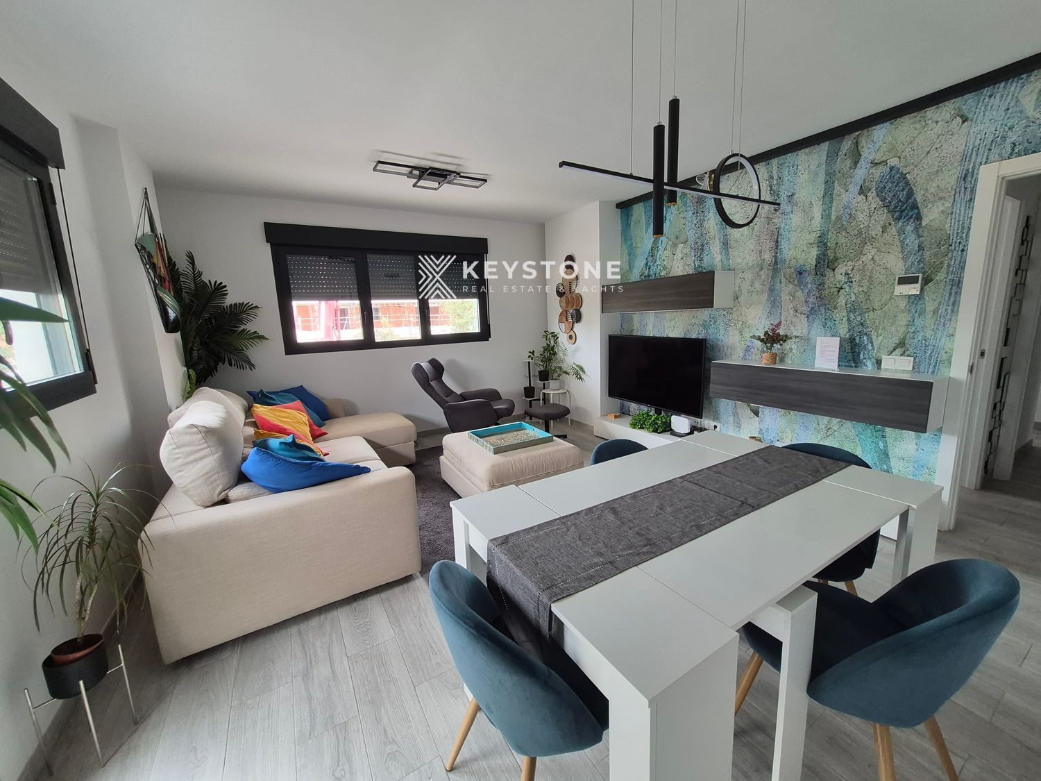 La vivienda, de reciente construcción, dispone de 2 dormitorios con armarios empotrados, 2 baños completos (uno en suite), amplio salón-comedor, cocina independiente totalmente equipada, además de terraza y balcón. Se entrega completamente amueblado y listo para entrar a vivir.