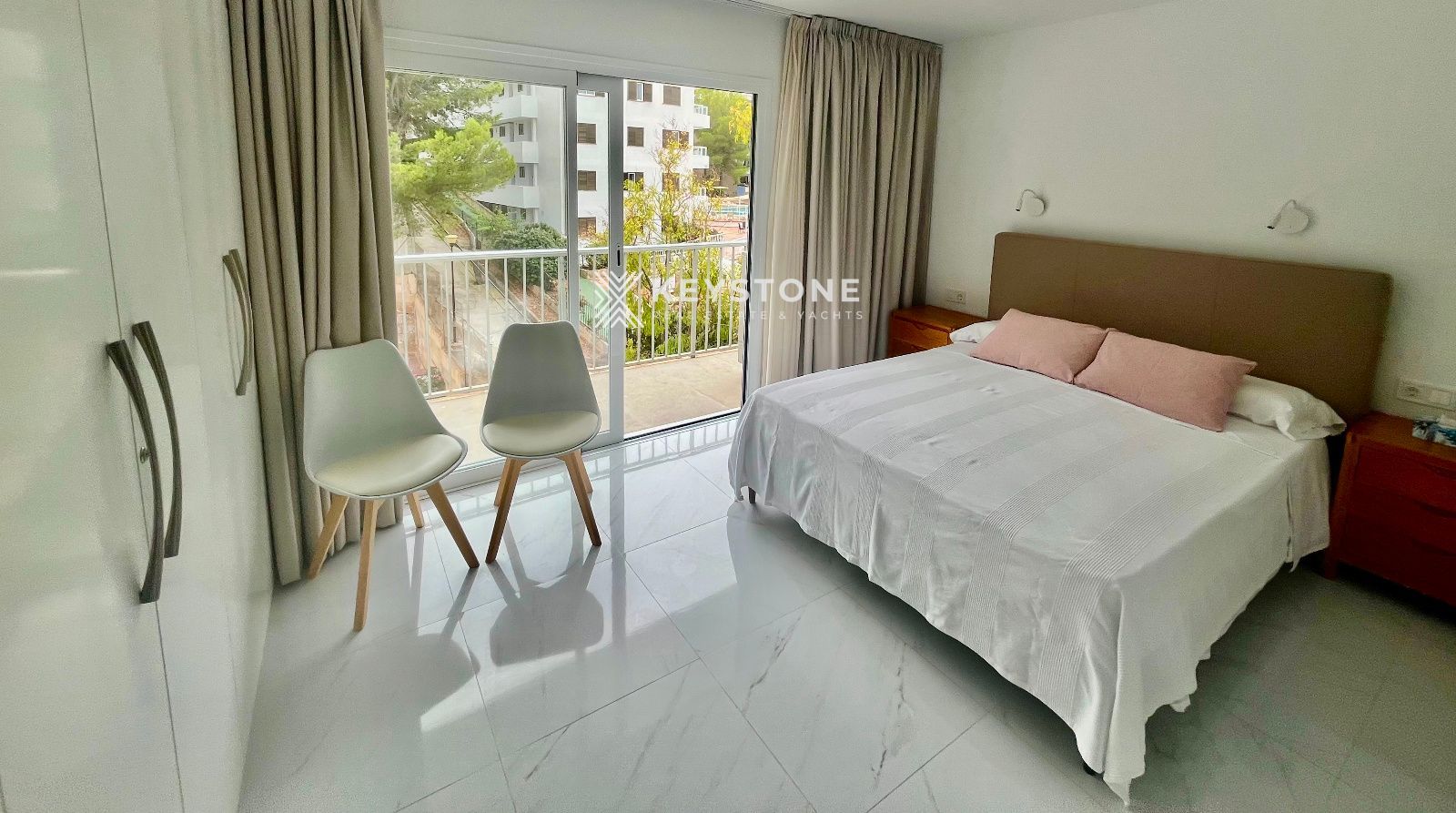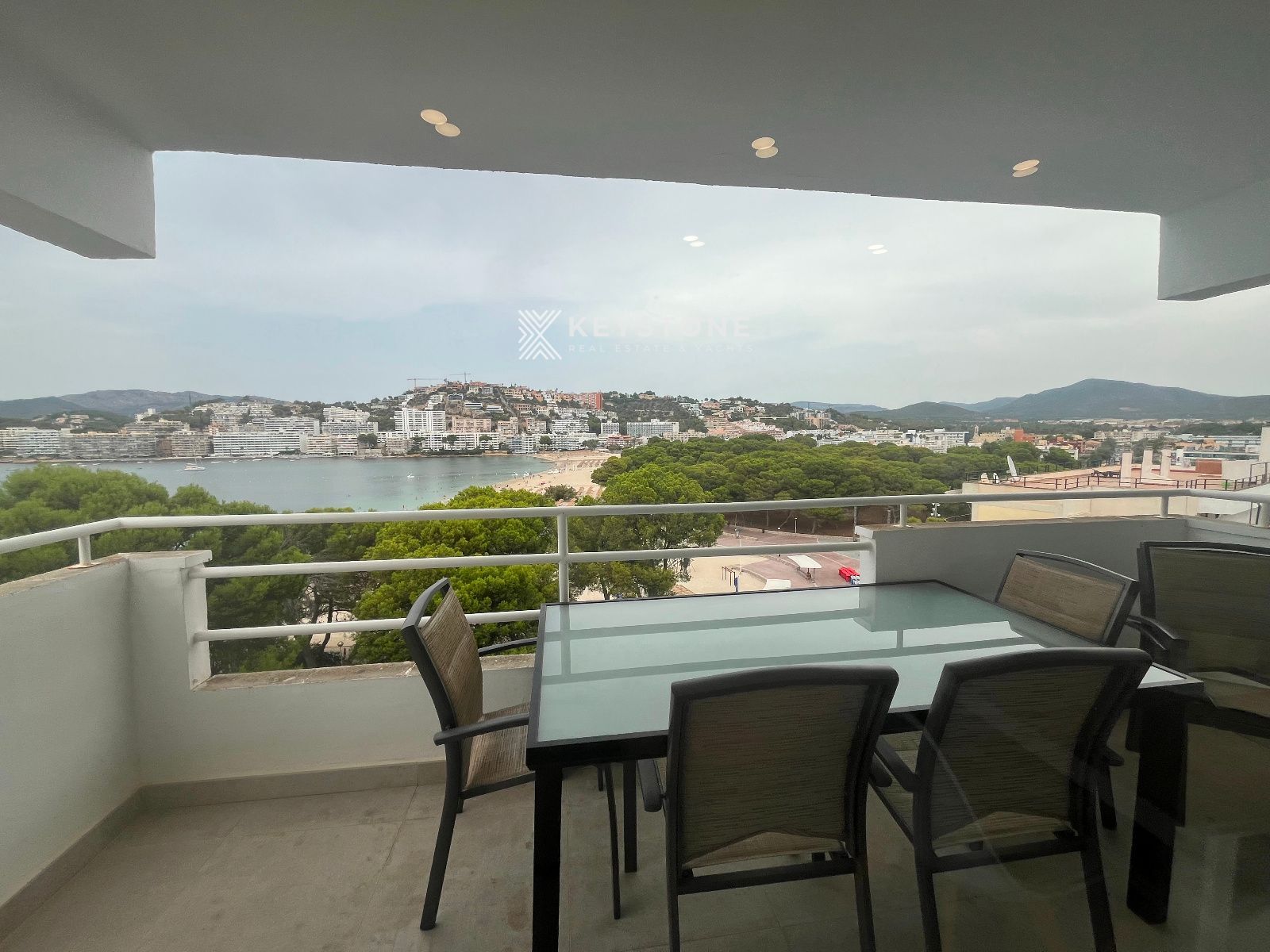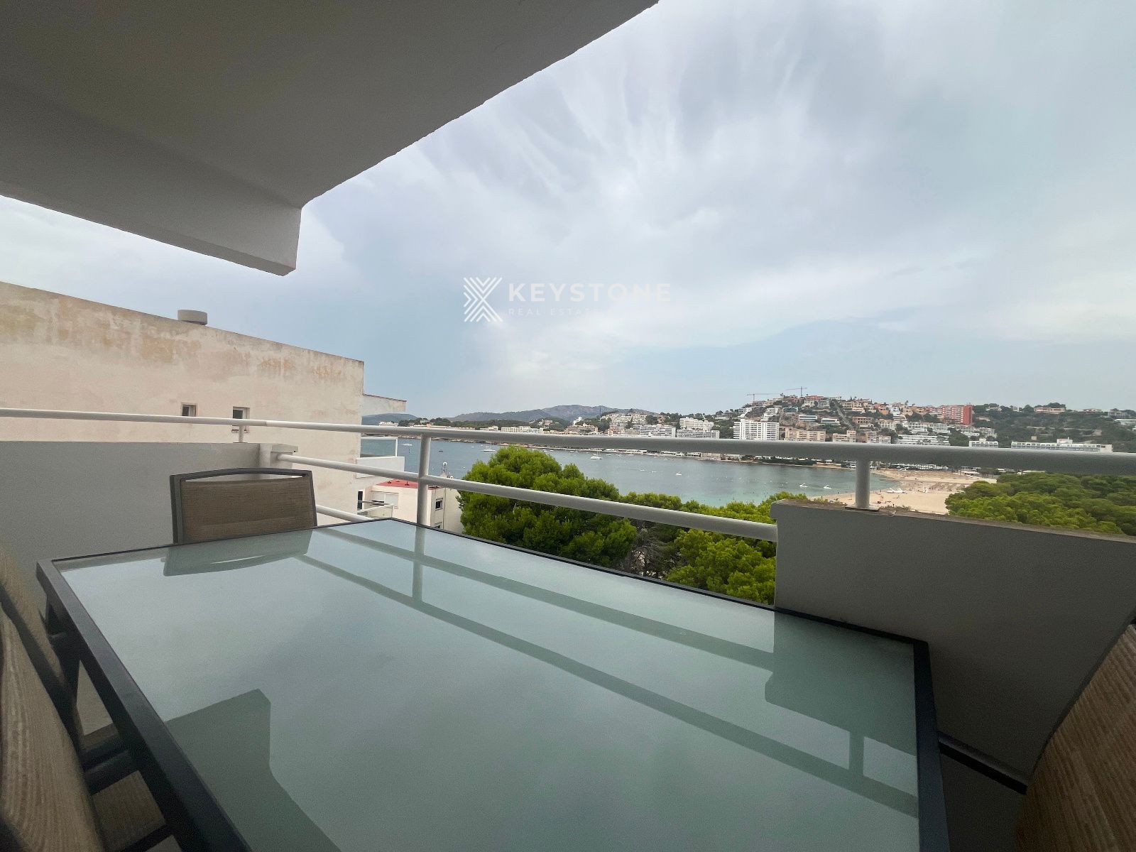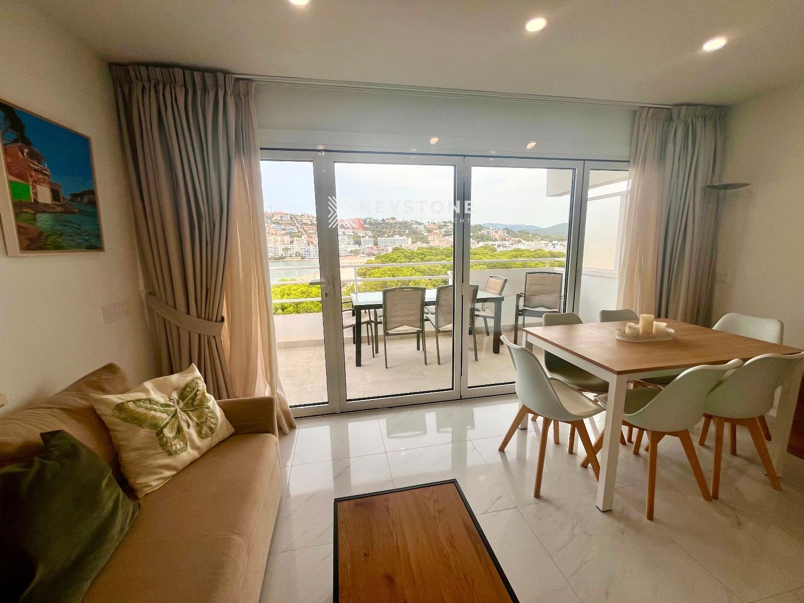 Se alquila apartamento con vistas al mar en la playa de Santa Ponsa. Vivienda de 2 dormitorios y 2 baños, situada en una finca con ascensor y piscina comunitaria. Se ofrece amueblado, en una ubicación privilegiada, totalmente reformado y equipado con aire acondicionado frío/calor. Dispone de una amplia terraza ideal para disfrutar de las vistas, cocina abierta equipada. Una habitación cuenta con cama de matrimonio, armario y terraza y un baño en suite, y la segunda habitación dispone de dos camas individuales, Solo alquiler temporal hasta junio de 2026. se requiere Fianza y honorarios de agencia