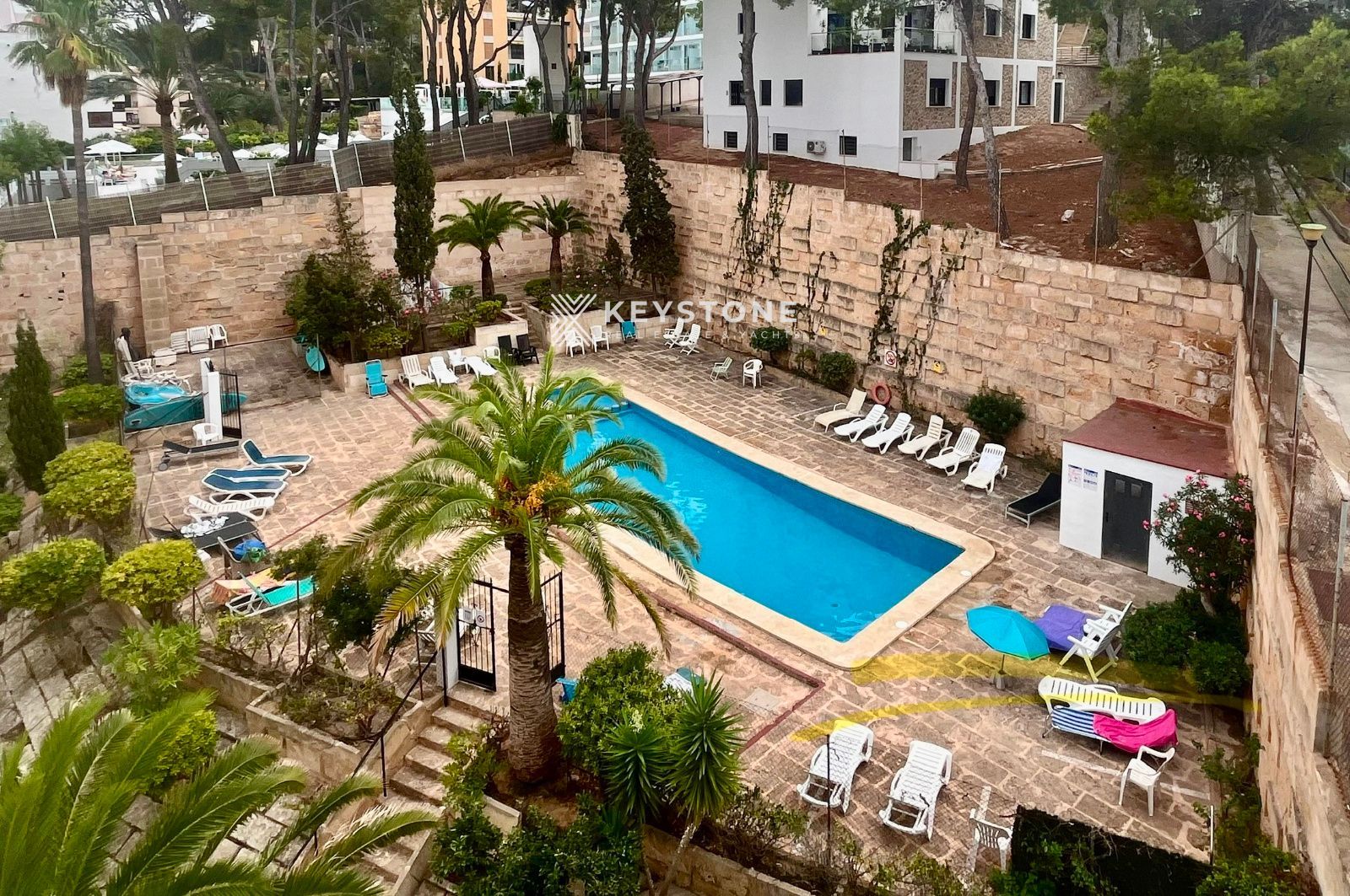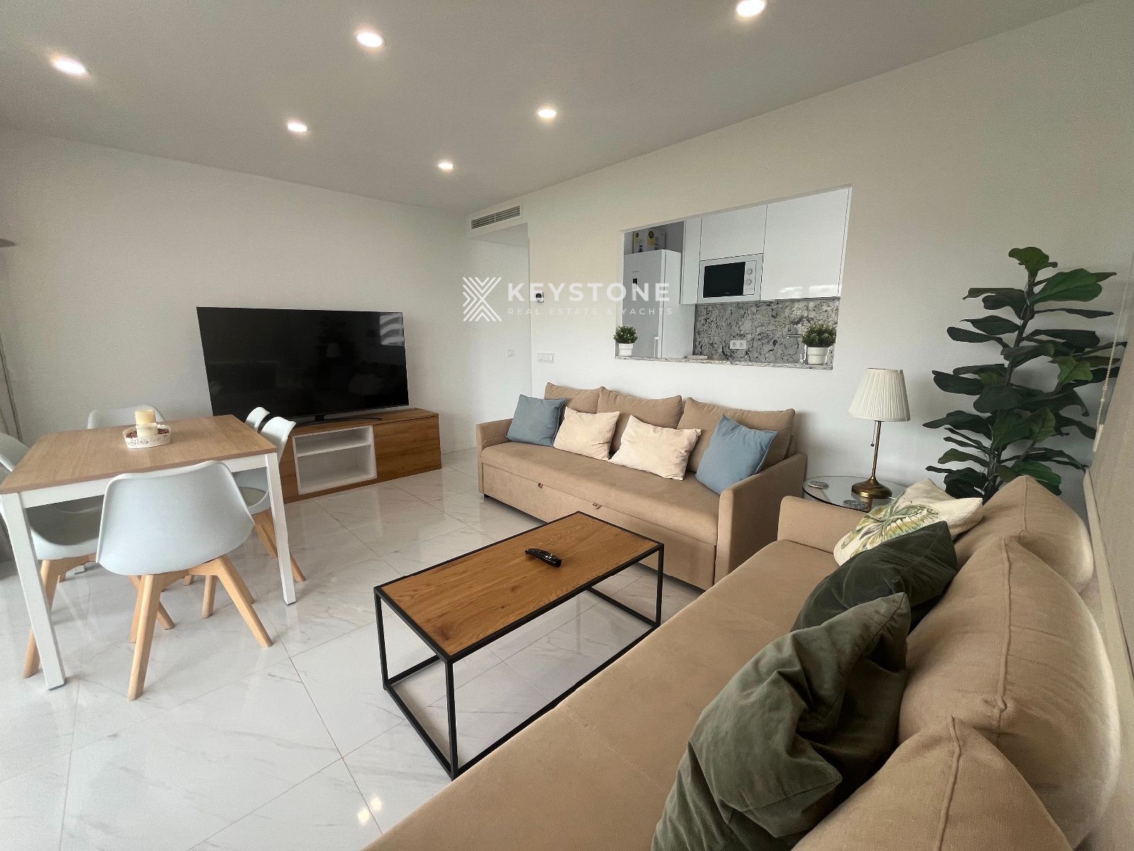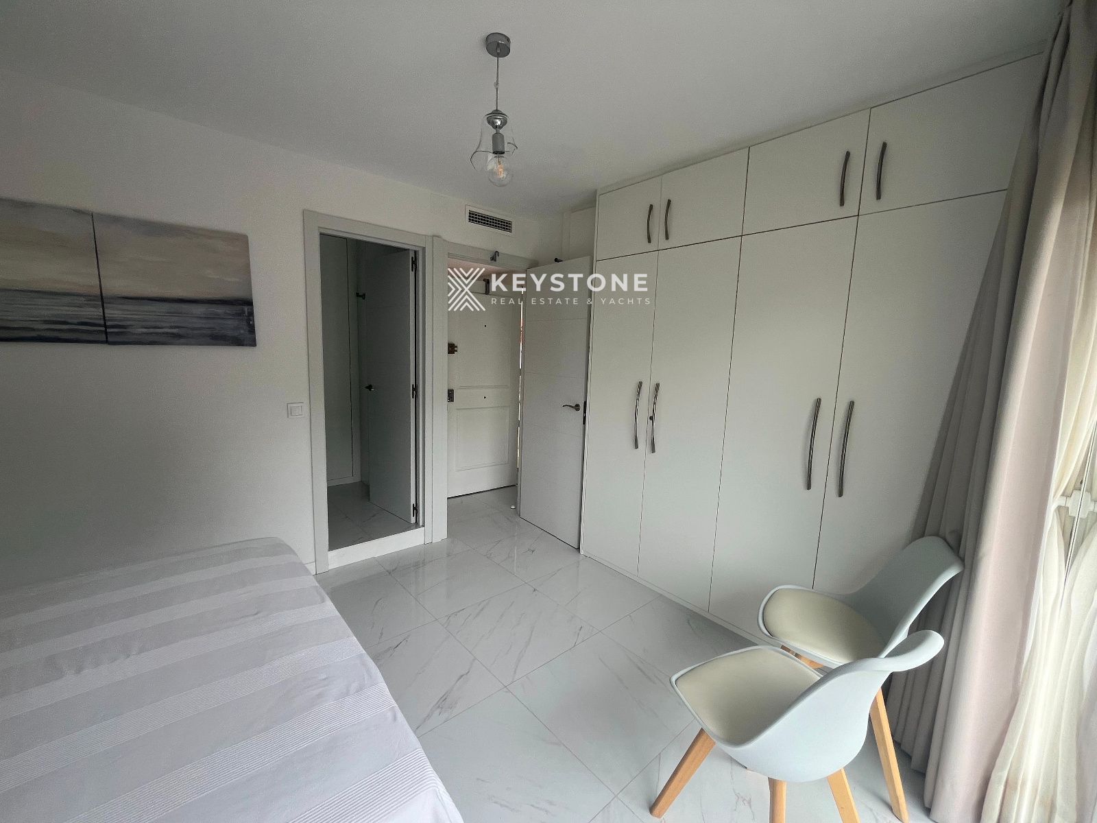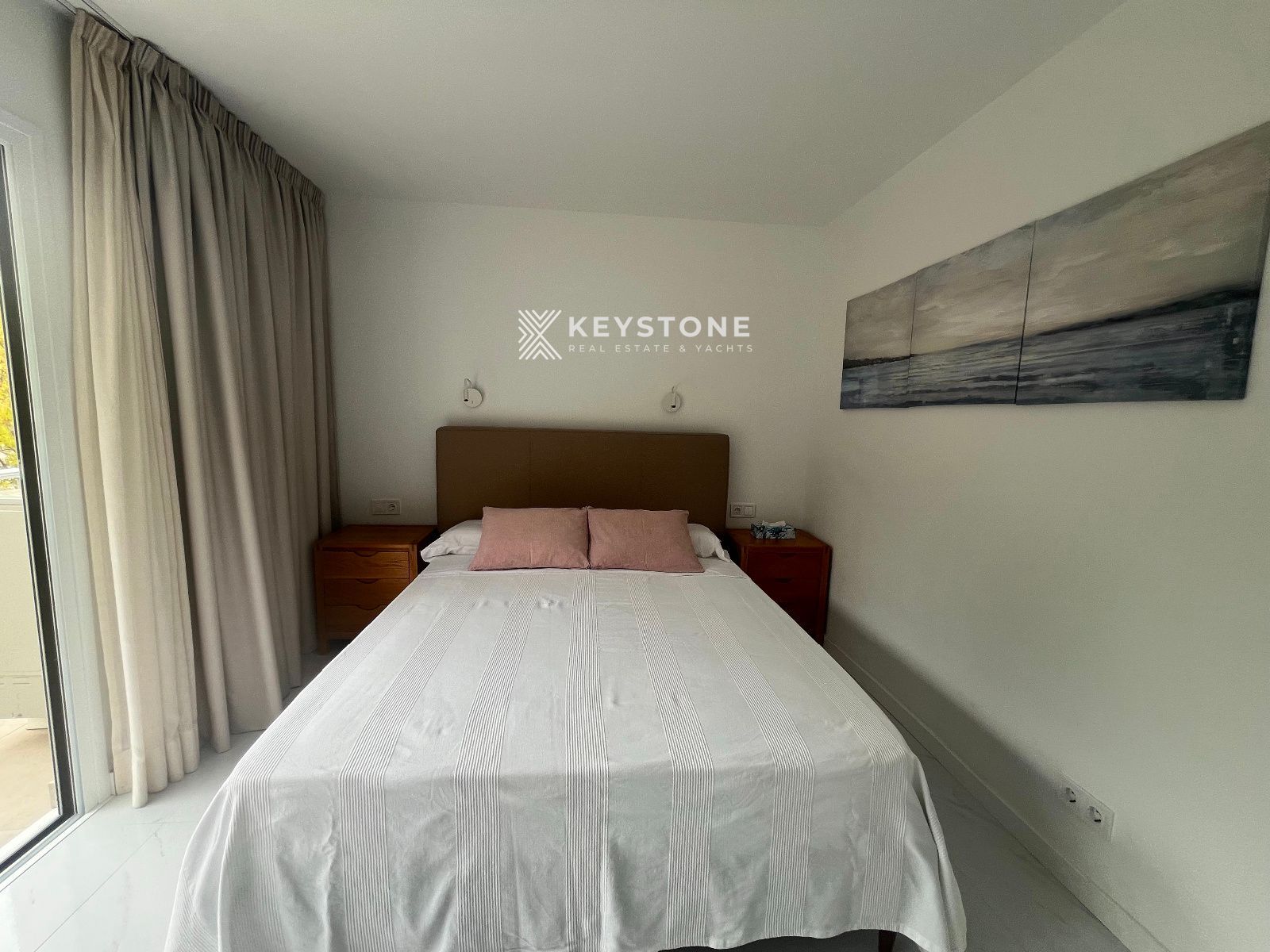 Se alquila apartamento con vistas al mar en la playa de Santa Ponsa. Vivienda de 2 dormitorios y 2 baños, situada en una finca con ascensor y piscina comunitaria. Se ofrece amueblado, en una ubicación privilegiada, totalmente reformado y equipado con aire acondicionado frío/calor. Dispone de una amplia terraza ideal para disfrutar de las vistas, cocina abierta equipada. Una habitación cuenta con cama de matrimonio, armario y terraza y un baño en suite, y la segunda habitación dispone de dos camas individuales, Solo alquiler temporal hasta junio de 2026. se requiere Fianza y honorarios de agencia