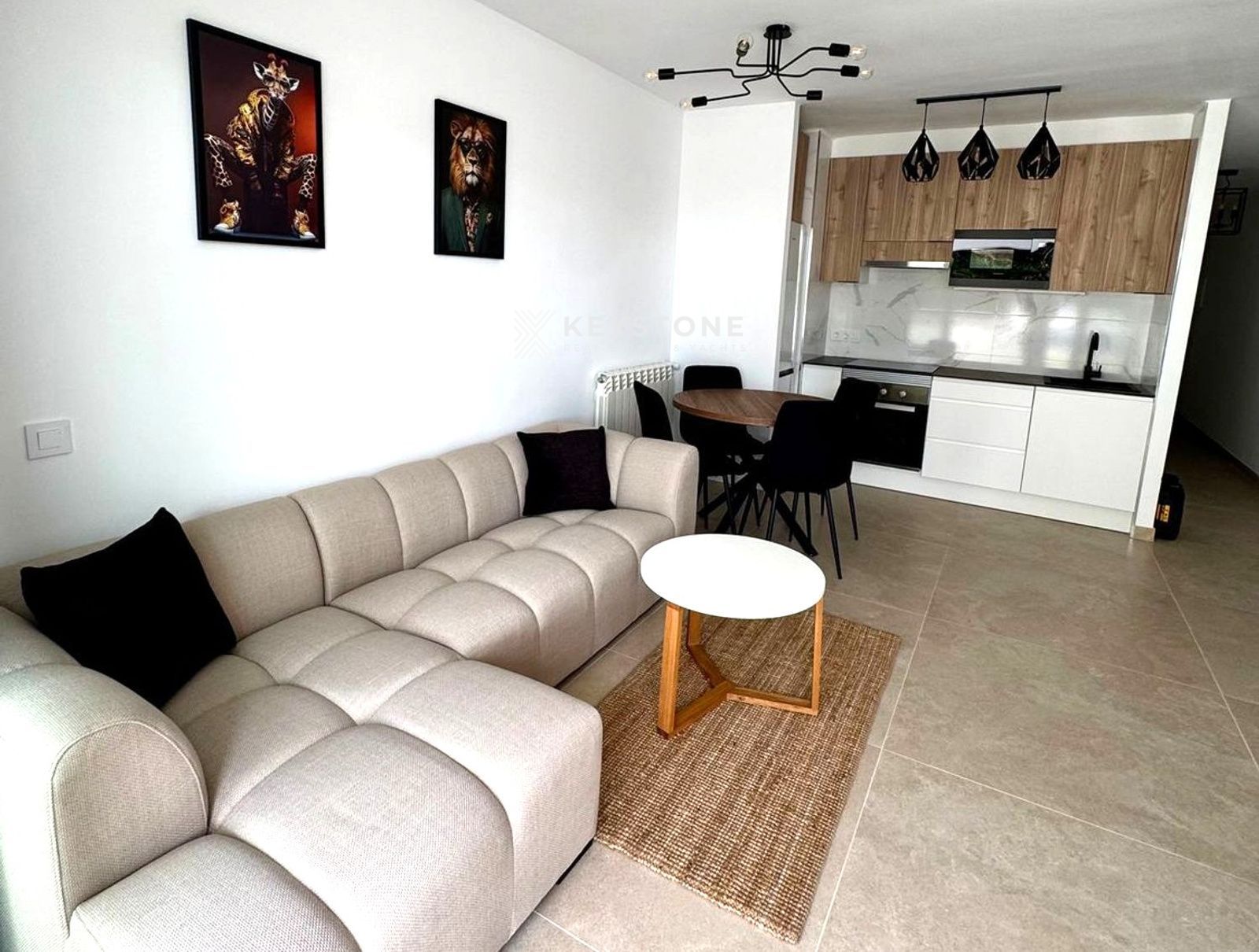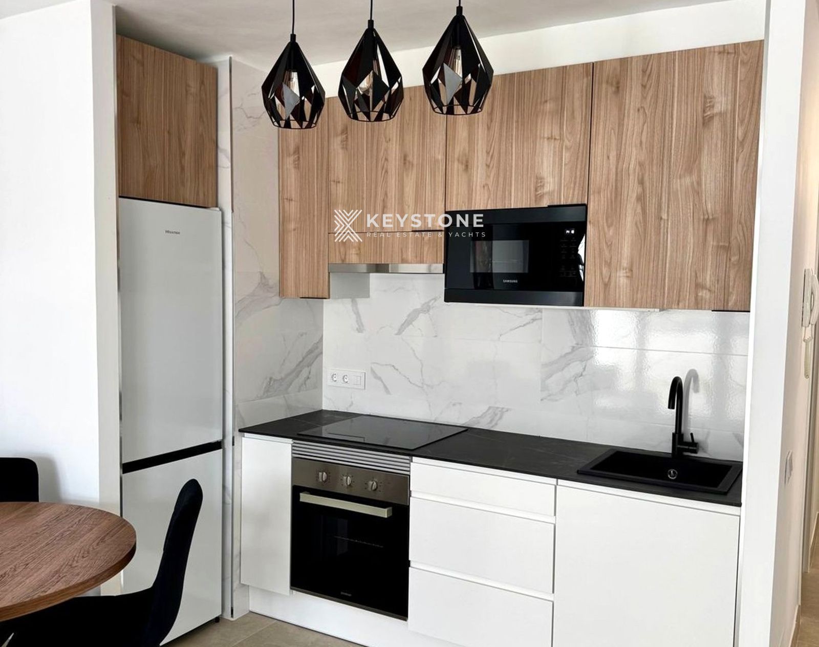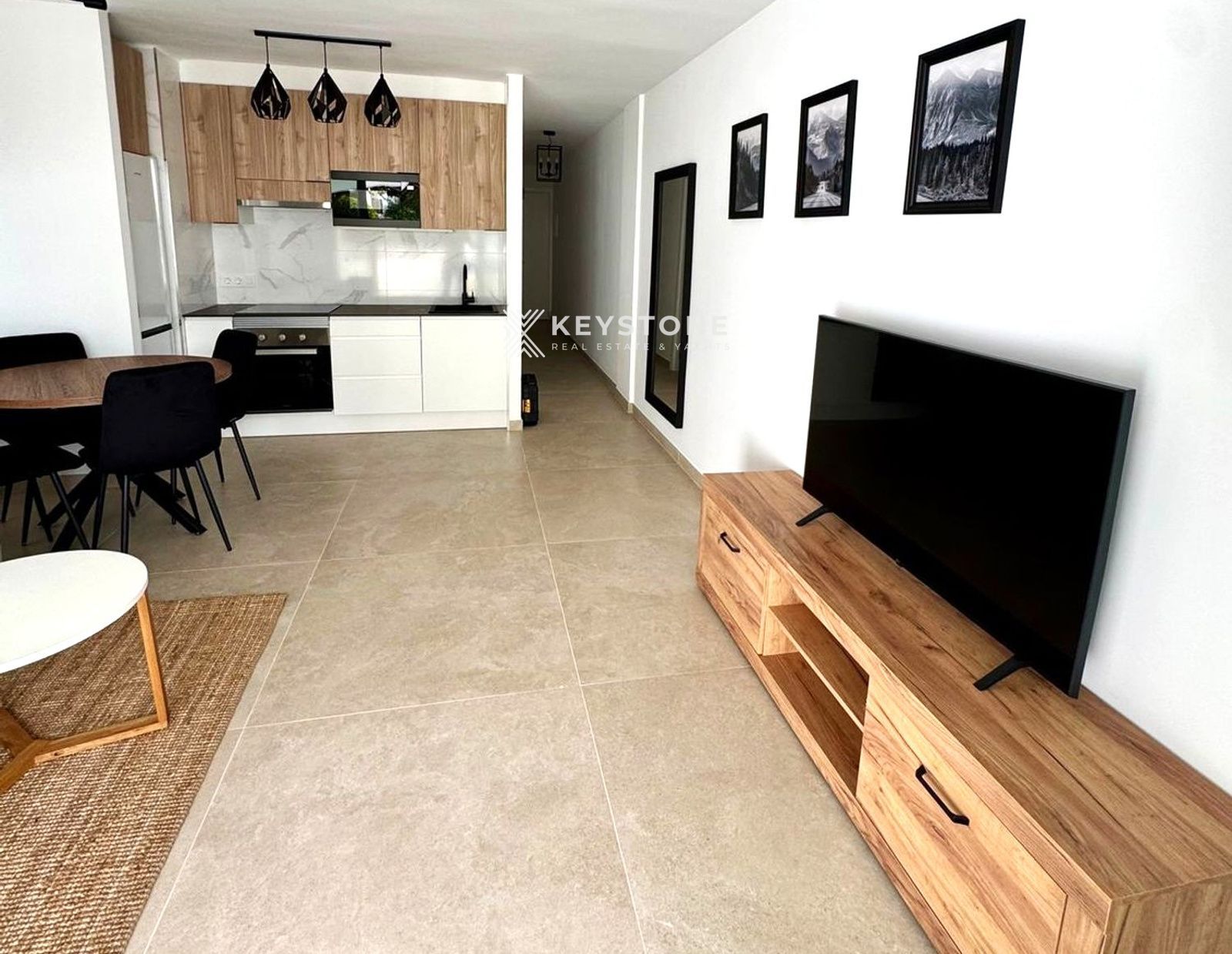 Situado en una planta baja, la propiedad ofrece una combinación ideal entre comodidad y vida frente al mar. Los 55 m² interiores han sido optimizados para proporcionar amplitud, luminosidad y funcionalidad. El apartamento dispone de un elegante dormitorio en suite, diseñado con materiales de alta calidad, así como un amplio salón con grandes ventanales que conectan directamente con el exterior y una cocina americana moderna, pensada para un uso práctico y confortable.