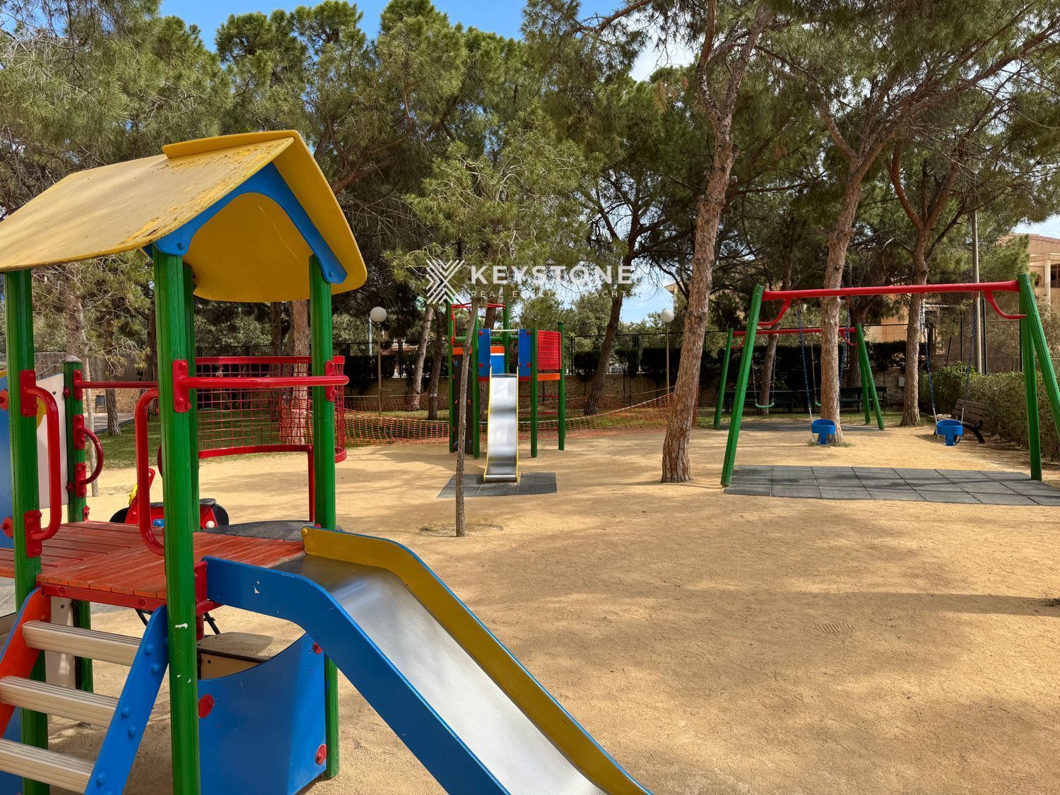 El complejo cuenta con piscina olímpica de 50 metros, tres pistas de tenis, zonas ajardinadas con palmeras y pinos, área infantil, zona de barbacoa, aparcamiento, garajes y espacios deportivos. Excelente ubicación, cerca de supermercados, centro de salud, transporte público, campo de fútbol y centro comercial.