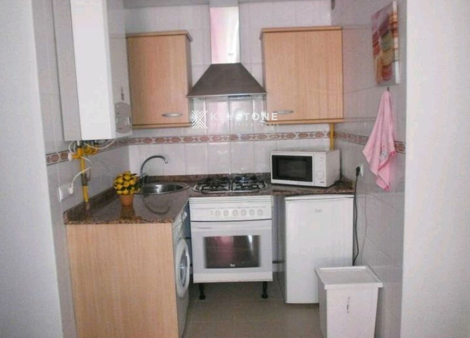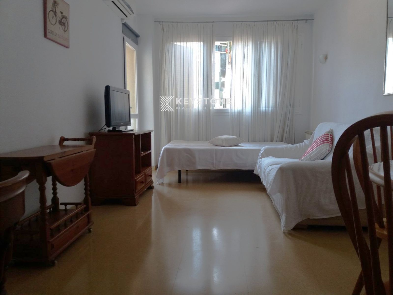 El salón-comedor dispone de aire acondicionado, lo que garantiza confort durante todo el año, y grandes ventanales que aportan abundante luz natural. El espacio está diseñado para disfrutar de un ambiente relajado y funcional, ideal para una o dos personas.