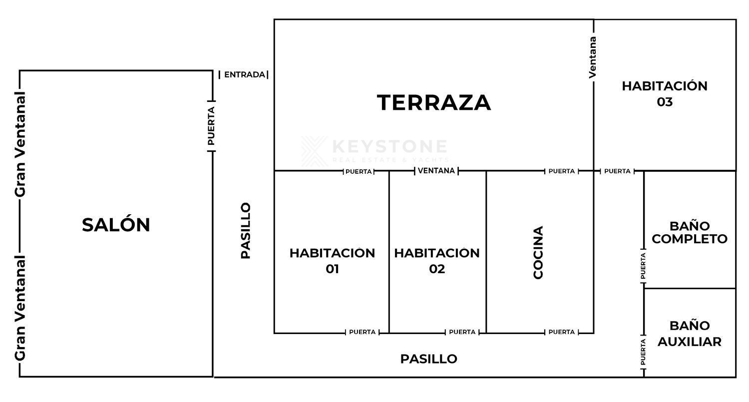 La vivienda se compone de tres habitaciones, un gran salón, dos baños completos, cocina y un cómodo office independiente, además de una terraza ideal para disfrutar de la luz natural. Su distribución facilita el confort y la privacidad en cada estancia.
