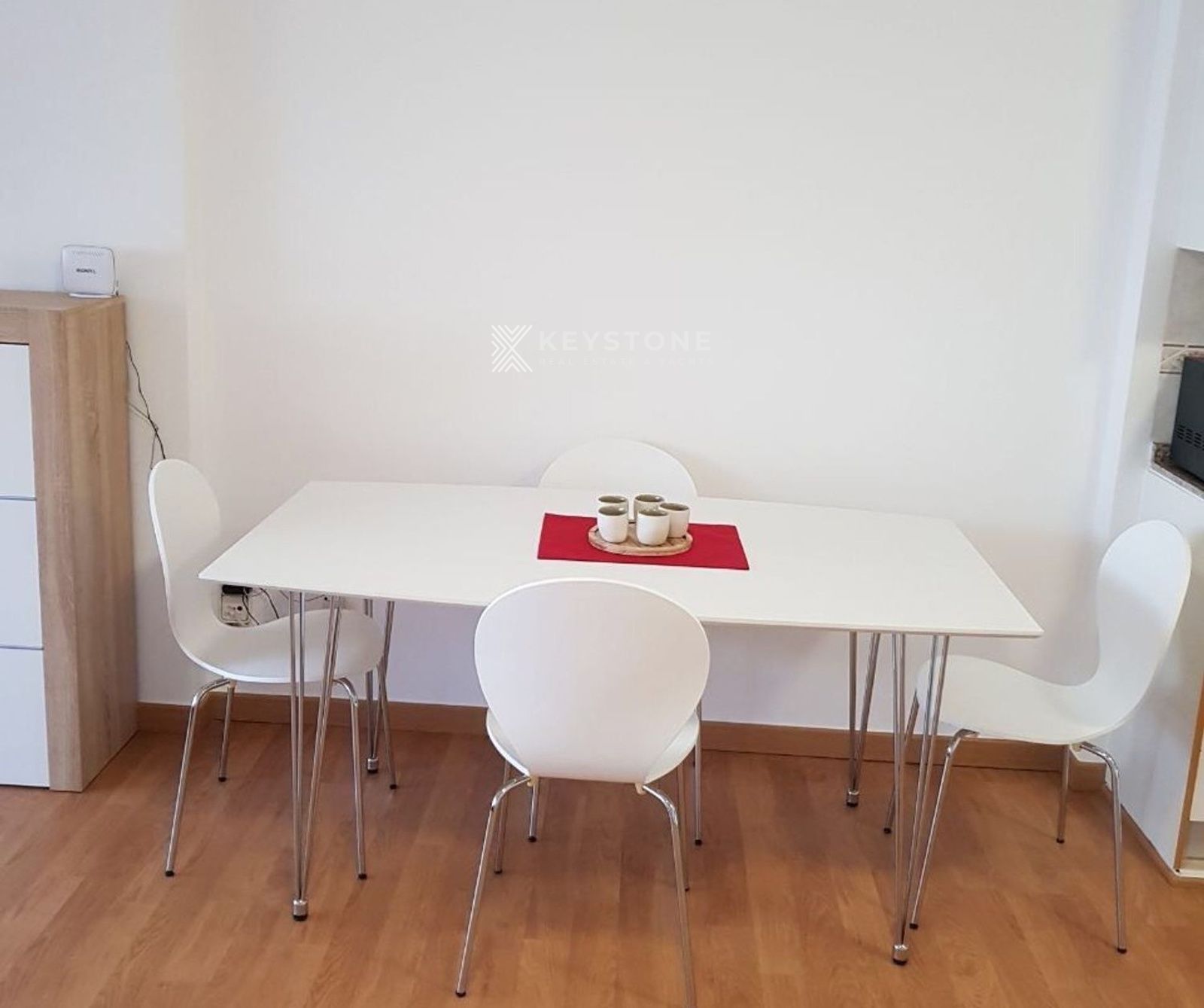 El piso cuenta con un dormitorio amplio, perfecto para garantizar confort y privacidad. El salón, muy luminoso, se abre hacia una zona con grandes ventanales que permiten disfrutar de la luz natural durante todo el día y apreciar las atractivas vistas de la zona. El suelo de parquet aporta calidez y estilo, creando un ambiente moderno y acogedor.