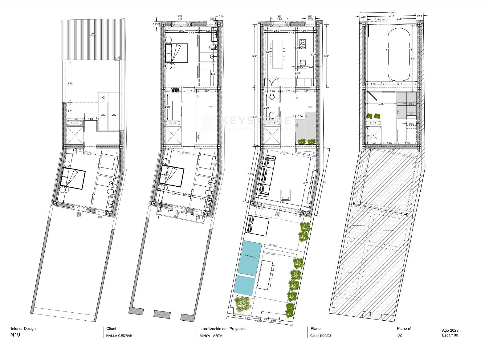 Esta elegante vivienda de nueva construcción en Artà ofrece una combinación perfecta de diseño, confort y funcionalidad. Con 246,35 m² construidos distribuidos en dos plantas más sótano, la propiedad presenta una distribución equilibrada y pensada para maximizar la comodidad. La planta sótano, de 41,74 m², es ideal para almacenaje u otros usos. En la planta baja, con 129,99 m², se sitúan las zonas principales de día, mientras que los dormitorios se encuentran repartidos entre la primera y segunda planta: dos en la primera y uno adicional en la segunda, ofreciendo privacidad y flexibilidad.