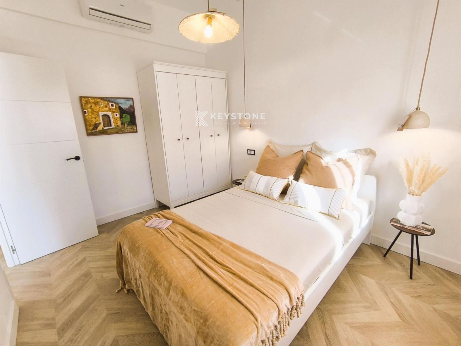 Este elegante piso en la calle Emili Darder destaca por su cuidada reforma, su luminosidad y su estilo mediterráneo contemporáneo. La vivienda dispone de dos amplios dormitorios dobles, uno de ellos en suite con baño privado, además de una habitación adicional perfecta como despacho o estudio. El salón-comedor es amplio y muy luminoso gracias a sus grandes ventanales, creando un ambiente cálido y acogedor. La cocina abierta está completamente equipada con electrodomésticos de última generación, ideal para un estilo de vida moderno y funcional.
