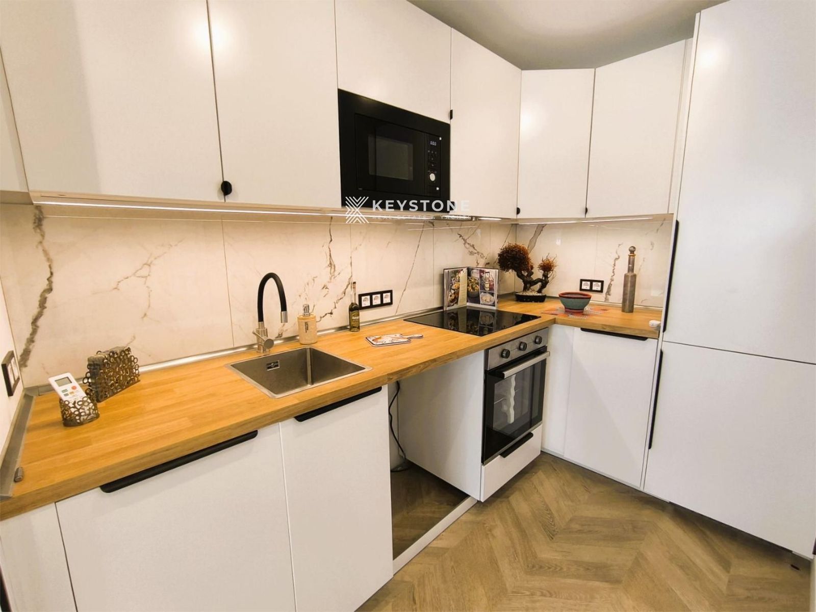Entre sus características destacan los suelos de parquet exclusivo, ventanas de doble acristalamiento que garantizan confort térmico y acústico, y cuatro unidades de aire acondicionado distribuidas estratégicamente. Los baños presentan un elegante diseño mediterráneo con iluminación LED y acabados de lujo. La decoración profesional aporta equilibrio, armonía y un alto valor estético a toda la vivienda.