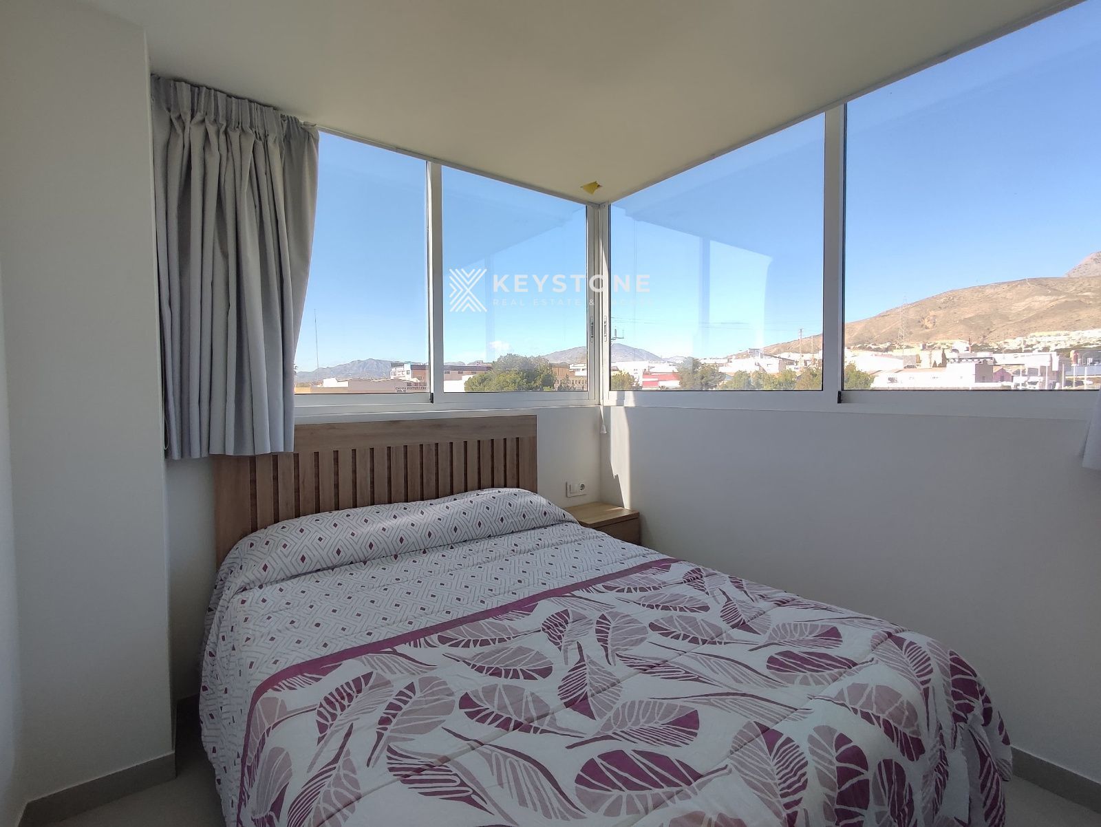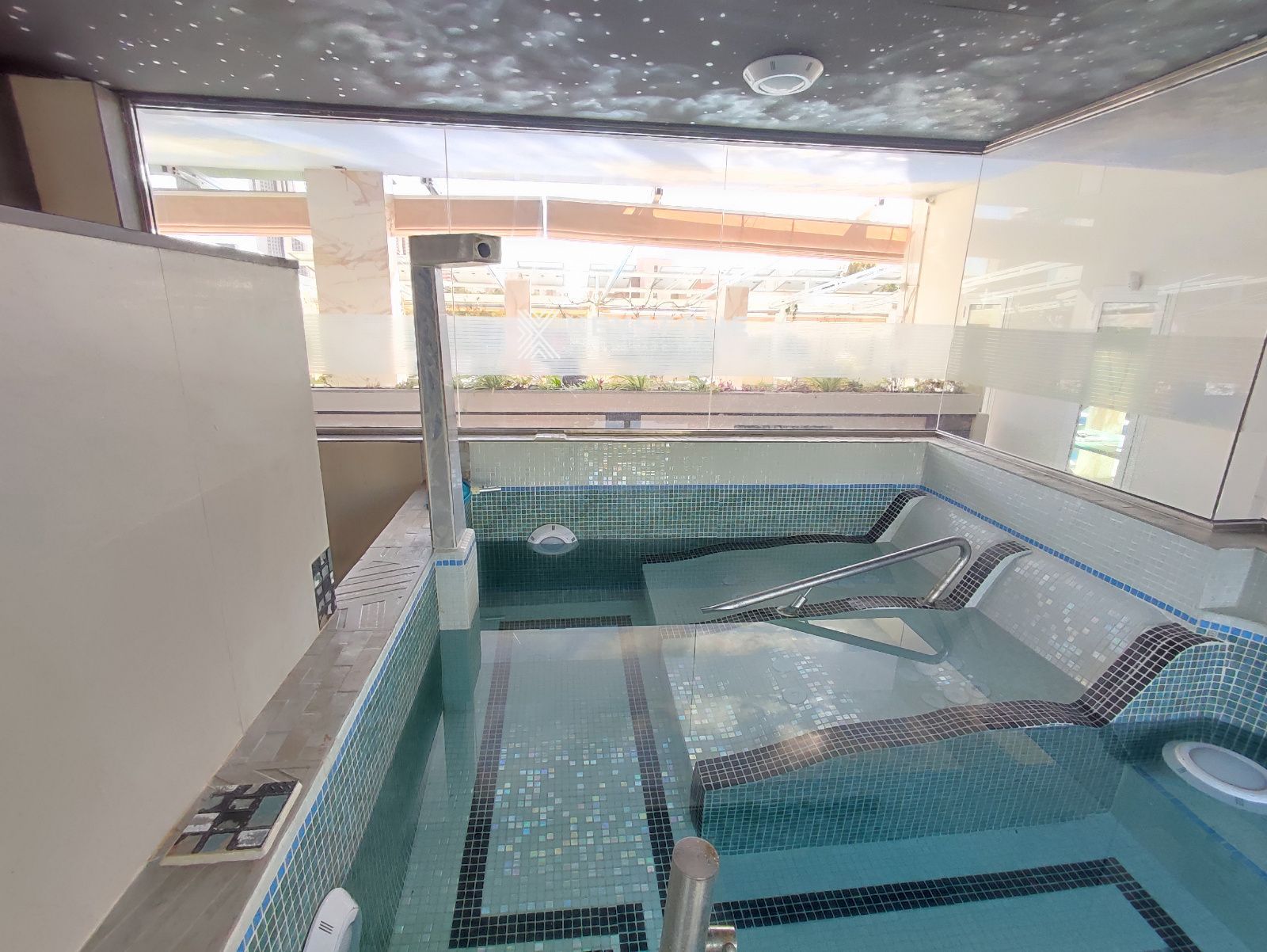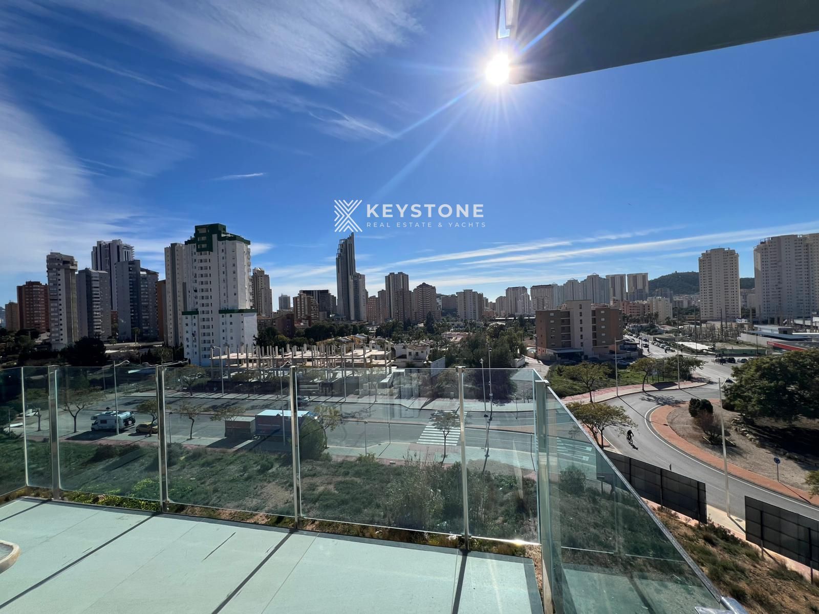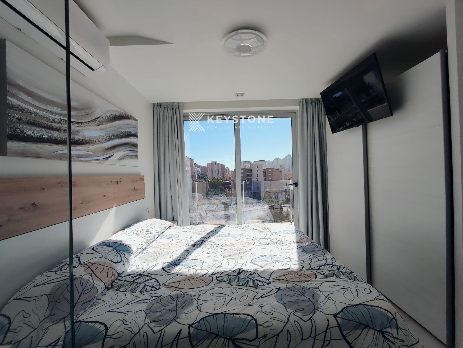 Dispone de dos dormitorios y dos baños completos, uno de ellos en suite. El dormitorio principal cuenta con grandes ventanales que aportan un ambiente moderno y elegante. Destaca su terraza privada de 15 m², con orientación sur y oeste, ideal para disfrutar del clima mediterráneo durante todo el año y de agradables vistas abiertas hacia los lugares más emblemáticos de Benidorm.