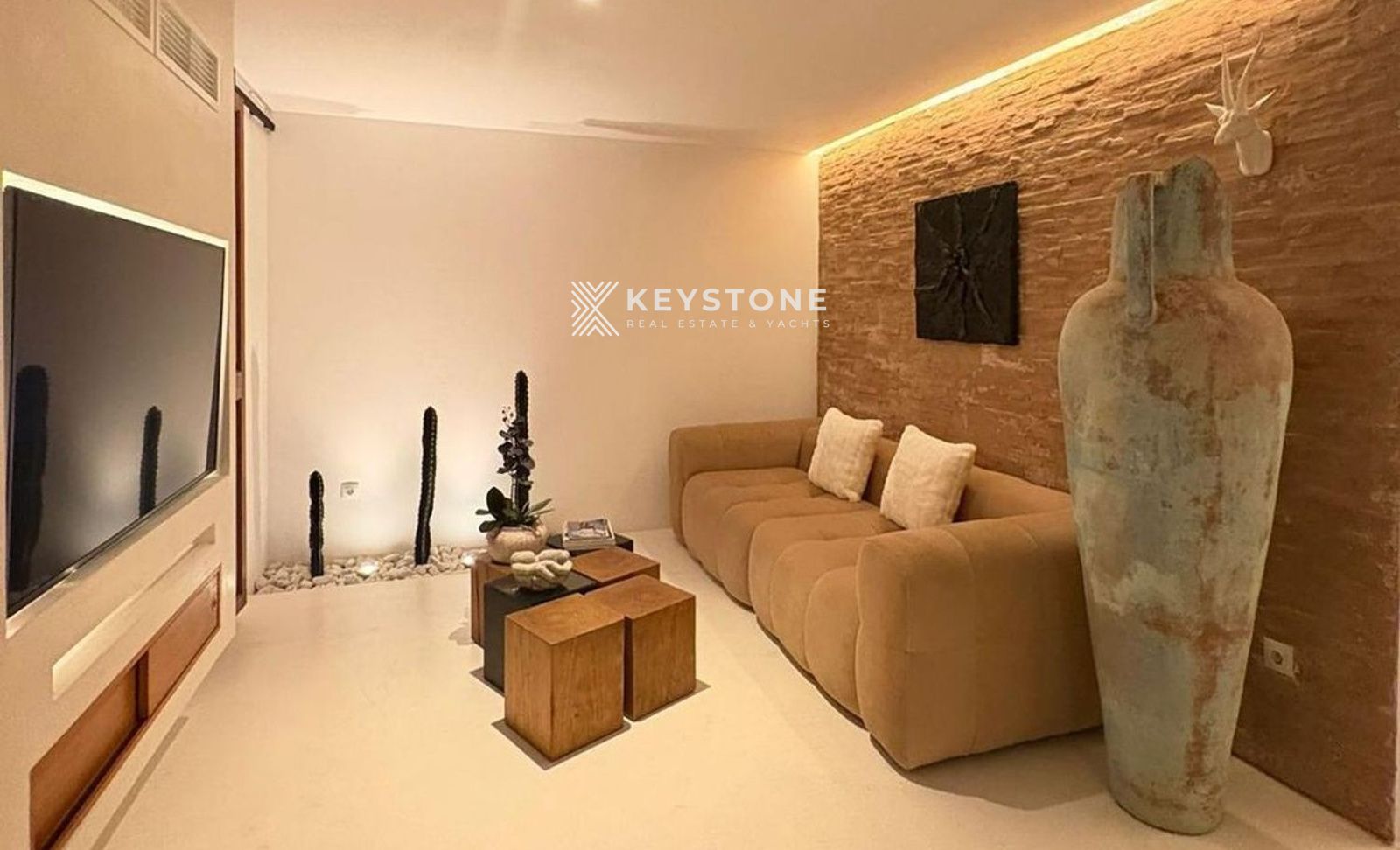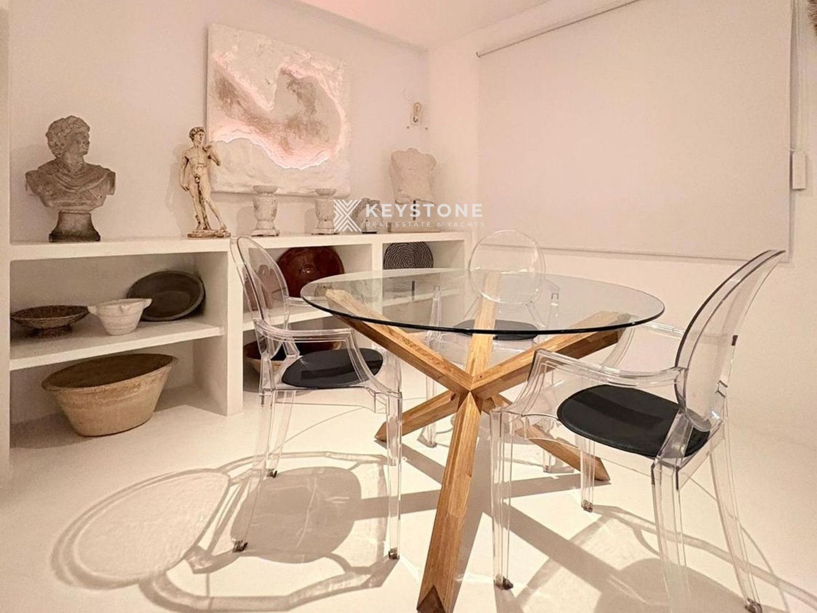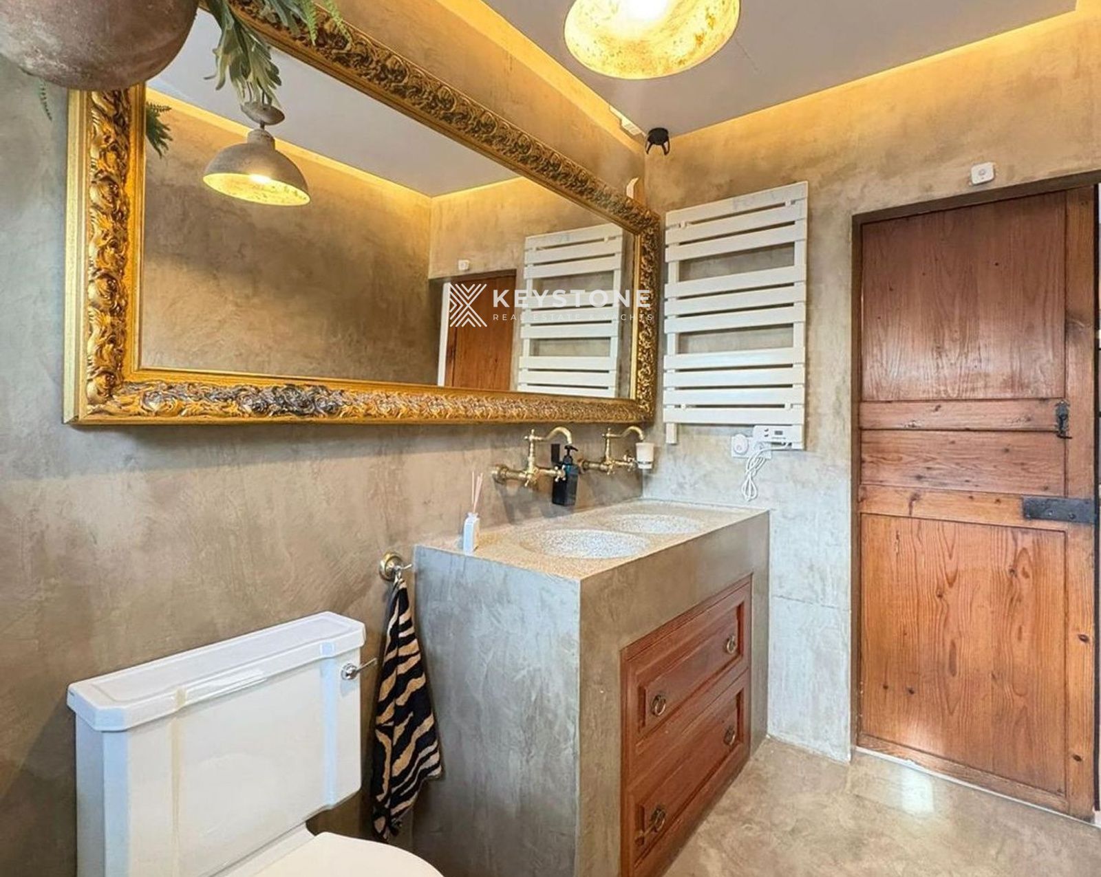 El interior destaca por su estética sofisticada y moderna, con microcemento continuo en toda la vivienda, incluyendo cocina y baño. Este acabado aporta una sensación de amplitud, elegancia y continuidad visual.