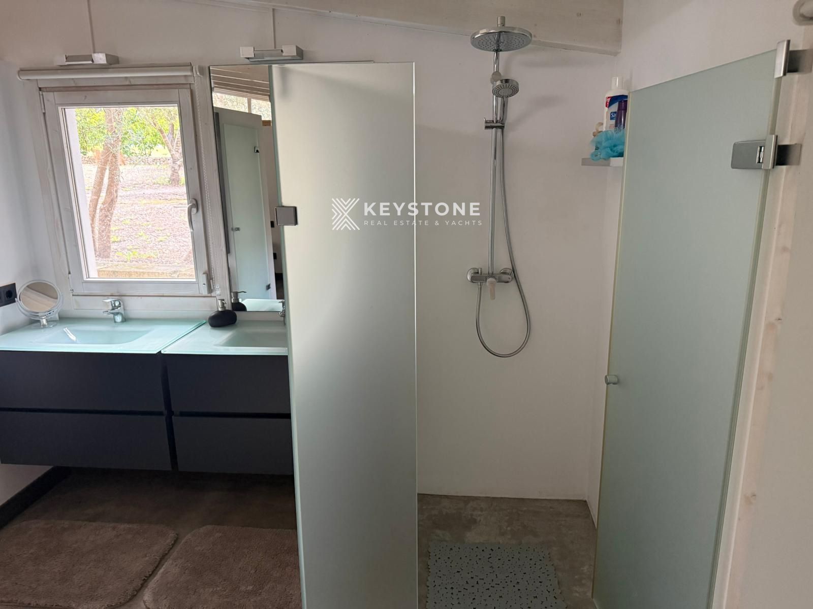 La vivienda principal dispone de aproximadamente 170 m² construidos y ha sido diseñada con materiales de alta calidad y todos los lujos necesarios para disfrutar de una estancia confortable durante todo el año. La casa cuenta con dos amplios dormitorios, espacios luminosos y zonas de descanso que permiten disfrutar del entorno natural que rodea la propiedad.
