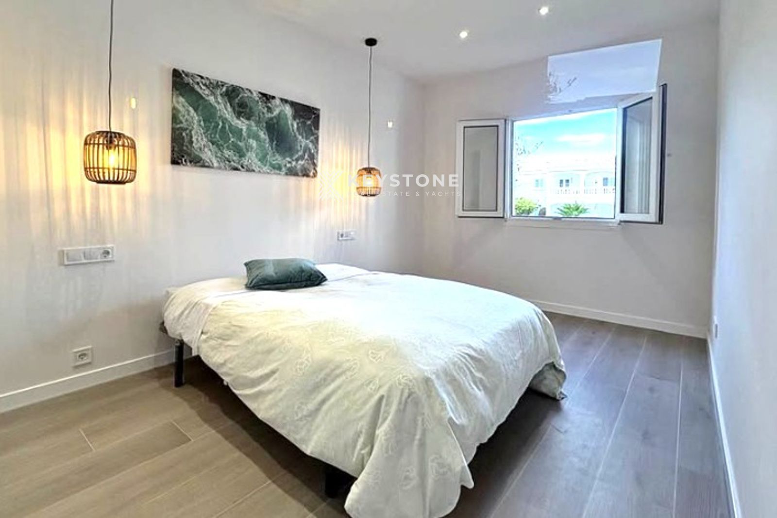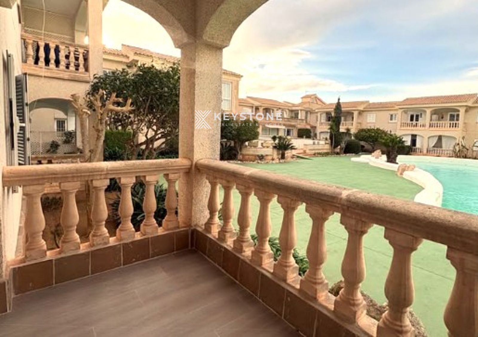 La terraza con vistas a la piscina comunitaria es perfecta para disfrutar del clima mediterráneo, relajarse o compartir momentos al aire libre. Este apartamento reformado a estrenar es ideal tanto como inversión inmobiliaria en Mallorca como para quienes buscan una vivienda cómoda y funcional.